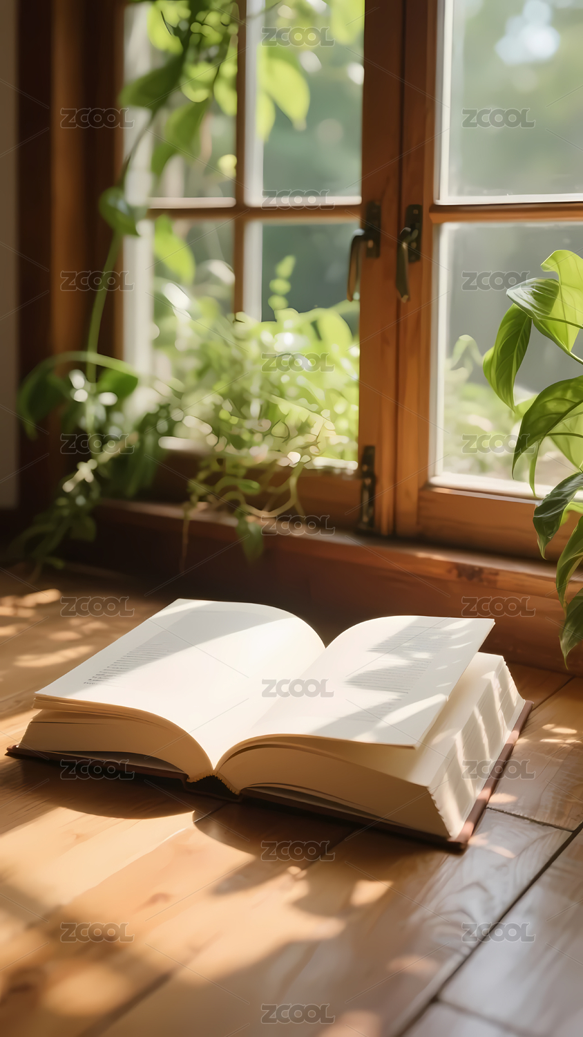 窗台上阳光洒落的泛黄书本