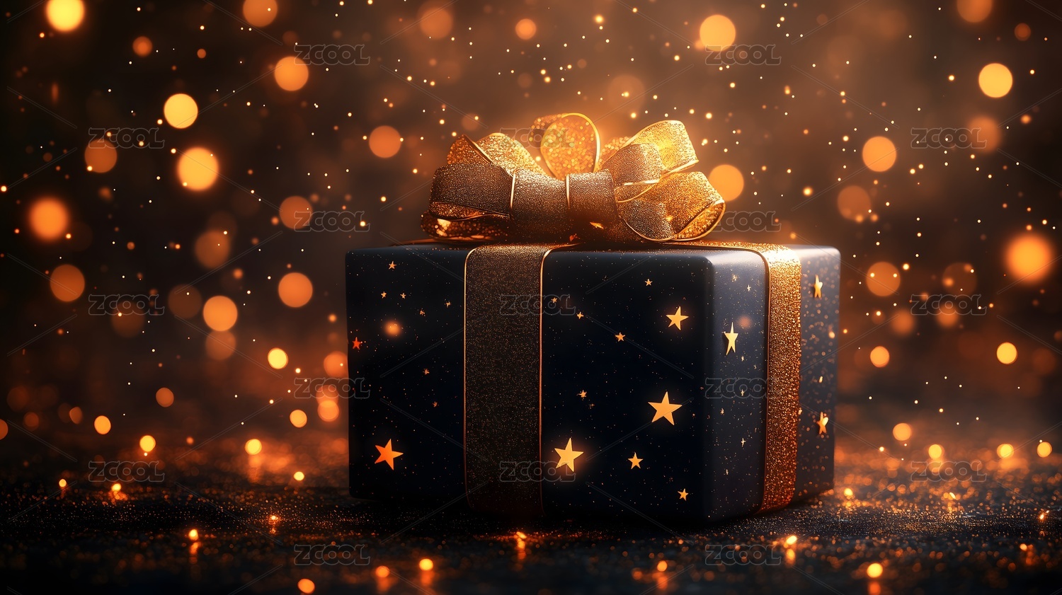 黑色礼盒与金色丝带,奢华闪耀的节日气氛
