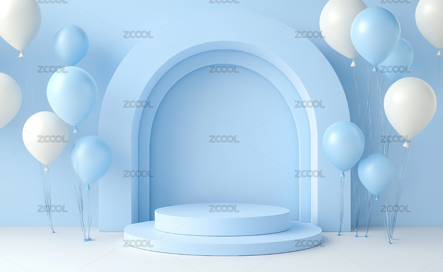 3D渲染彩色气球卡通风格产品展台背景