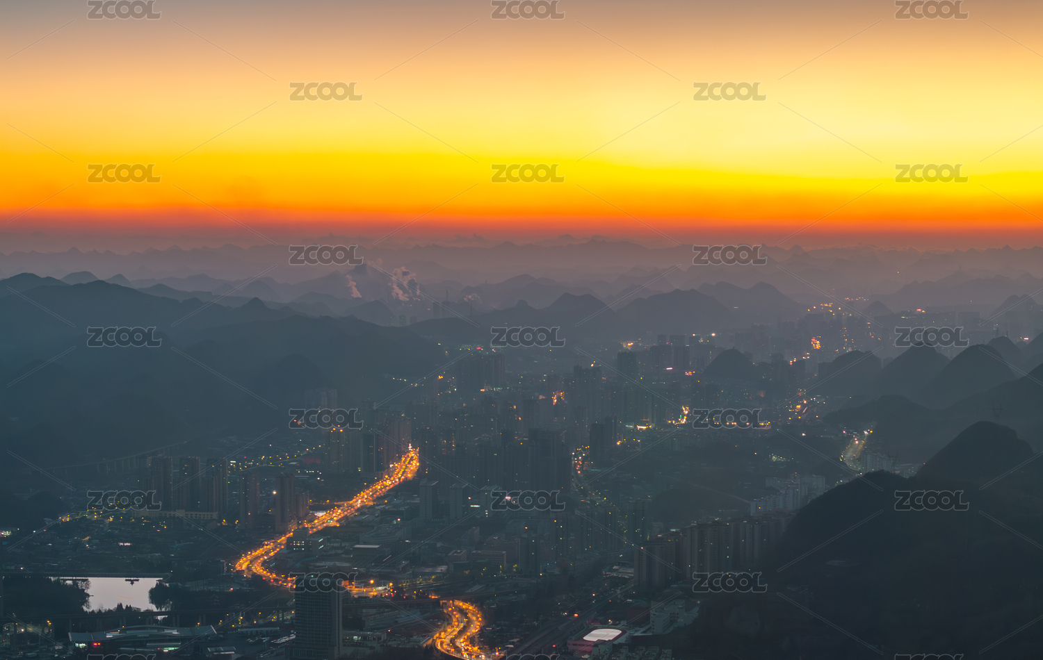贵州六盘水日出时城市风景风光