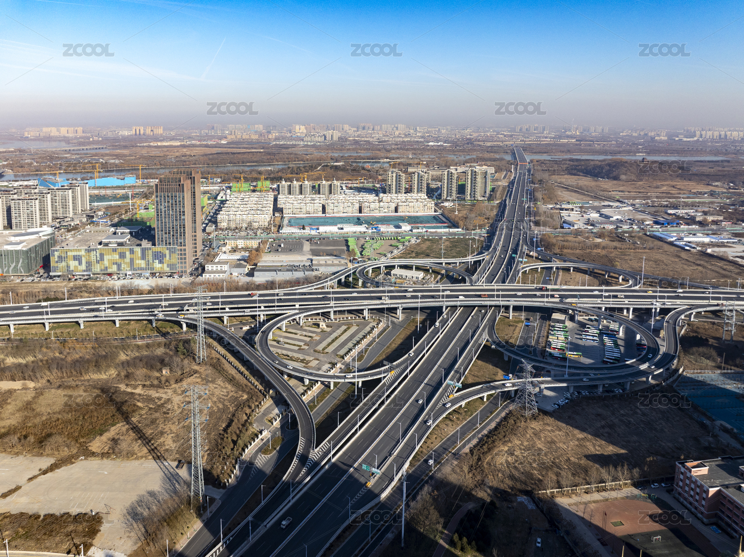天津洞庭路立交交通车流轨迹城市夜景航拍