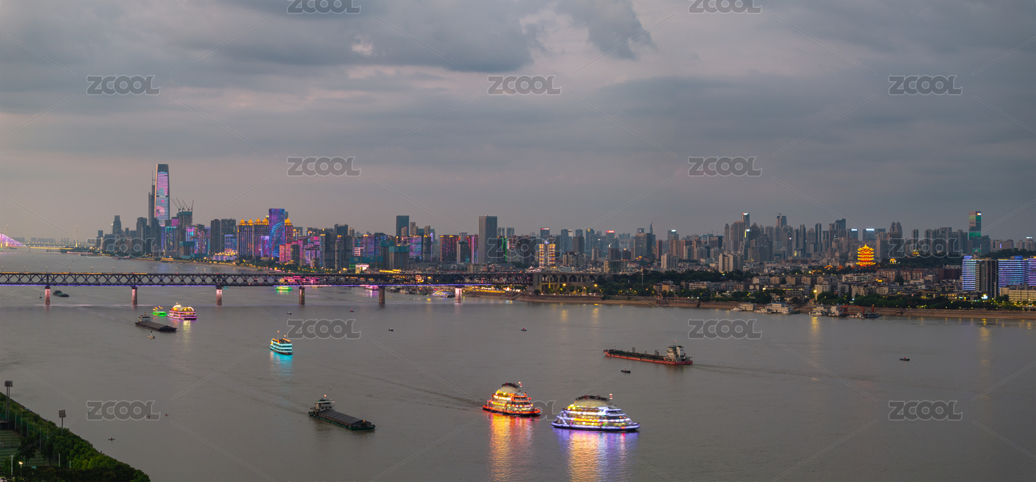 湖北武汉市江滩武汉长江大桥城市天际线夜景