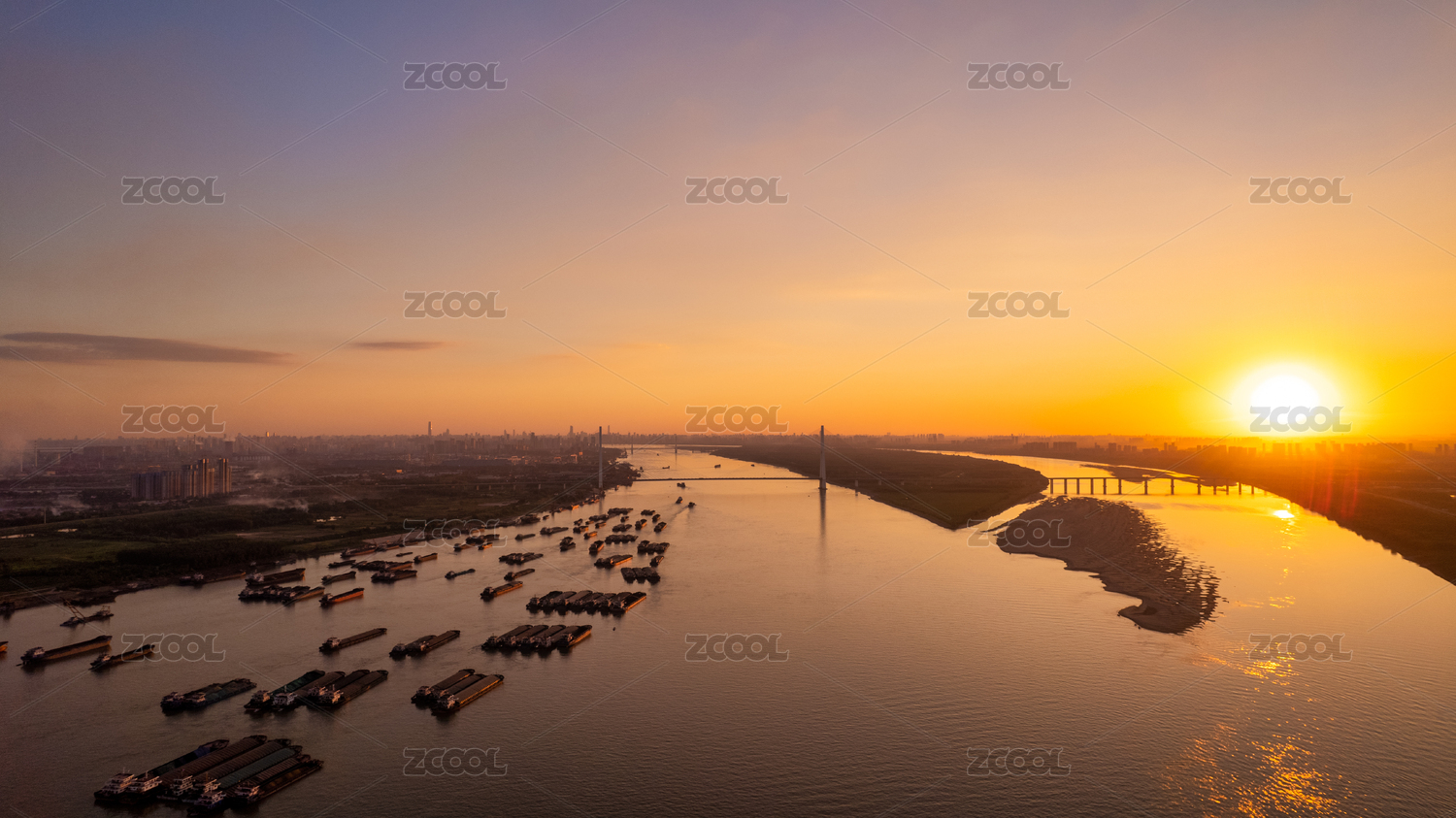 航拍苏州阳澄湖城市自然风光落日黄昏夕阳