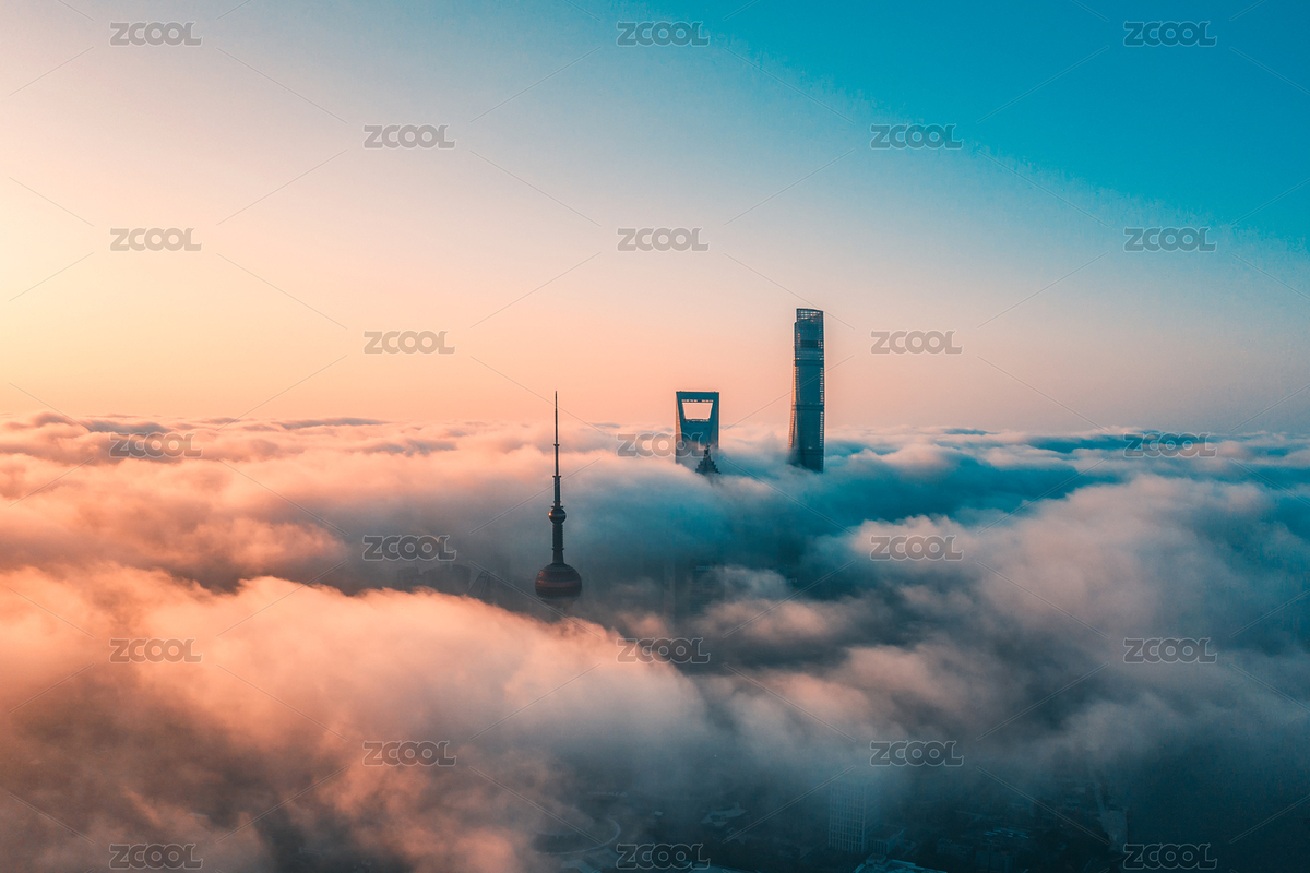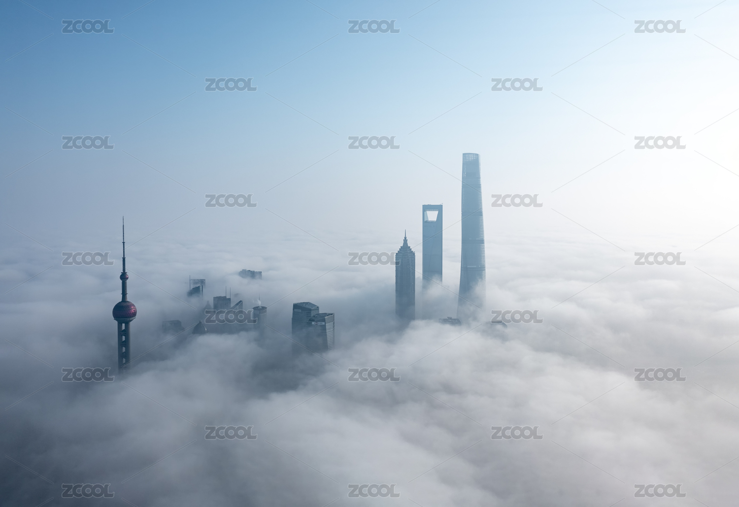 上海,建筑,现代,都市,航拍,陆家嘴,平流雾,黄浦江,东方明珠,上海中心