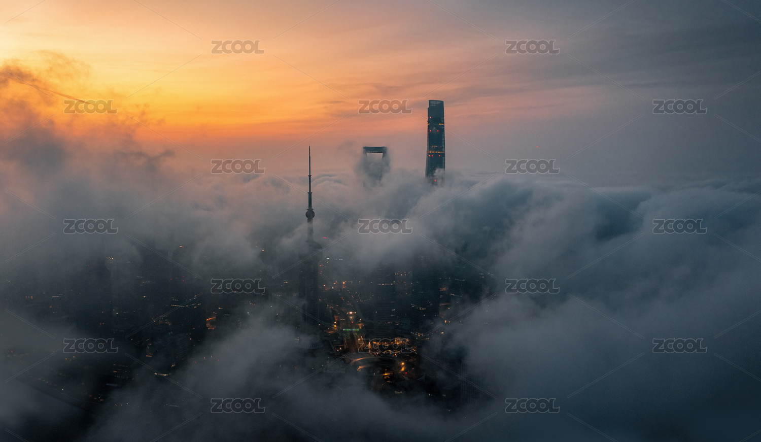 上海城市风光陆家嘴建筑地标平流雾全景图