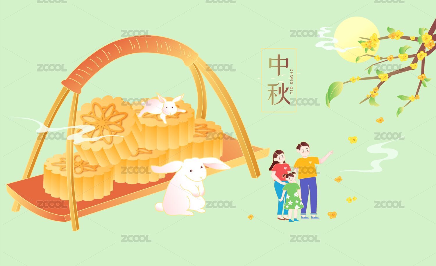 传统节日中秋节兔子中国风插画