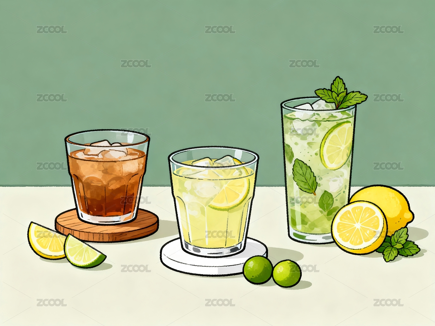 奶茶,水果茶,养乐多水果茶,柠檬养乐多水果茶,柠檬,水果奶茶,水彩画,水彩奶茶,水彩插画,水彩柠檬