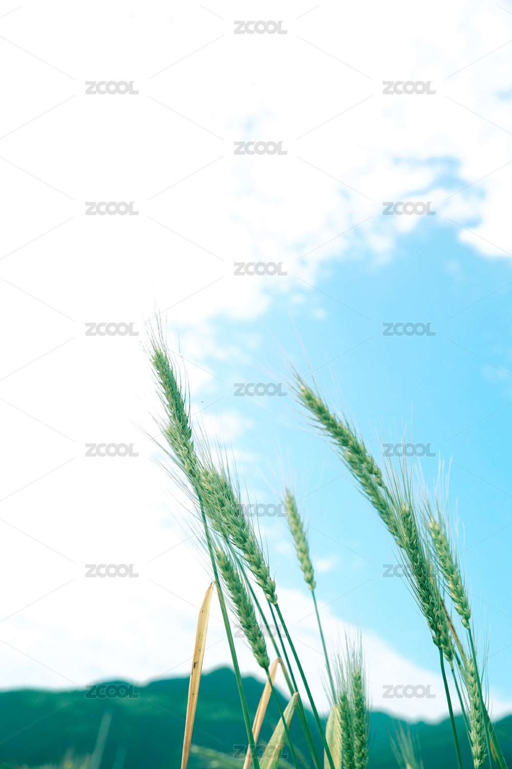 绿色麦田与湛蓝天空