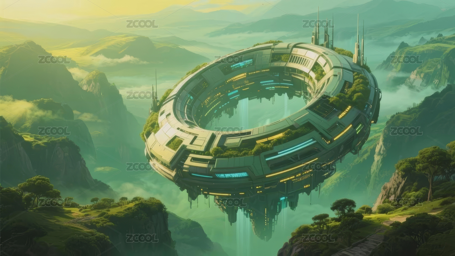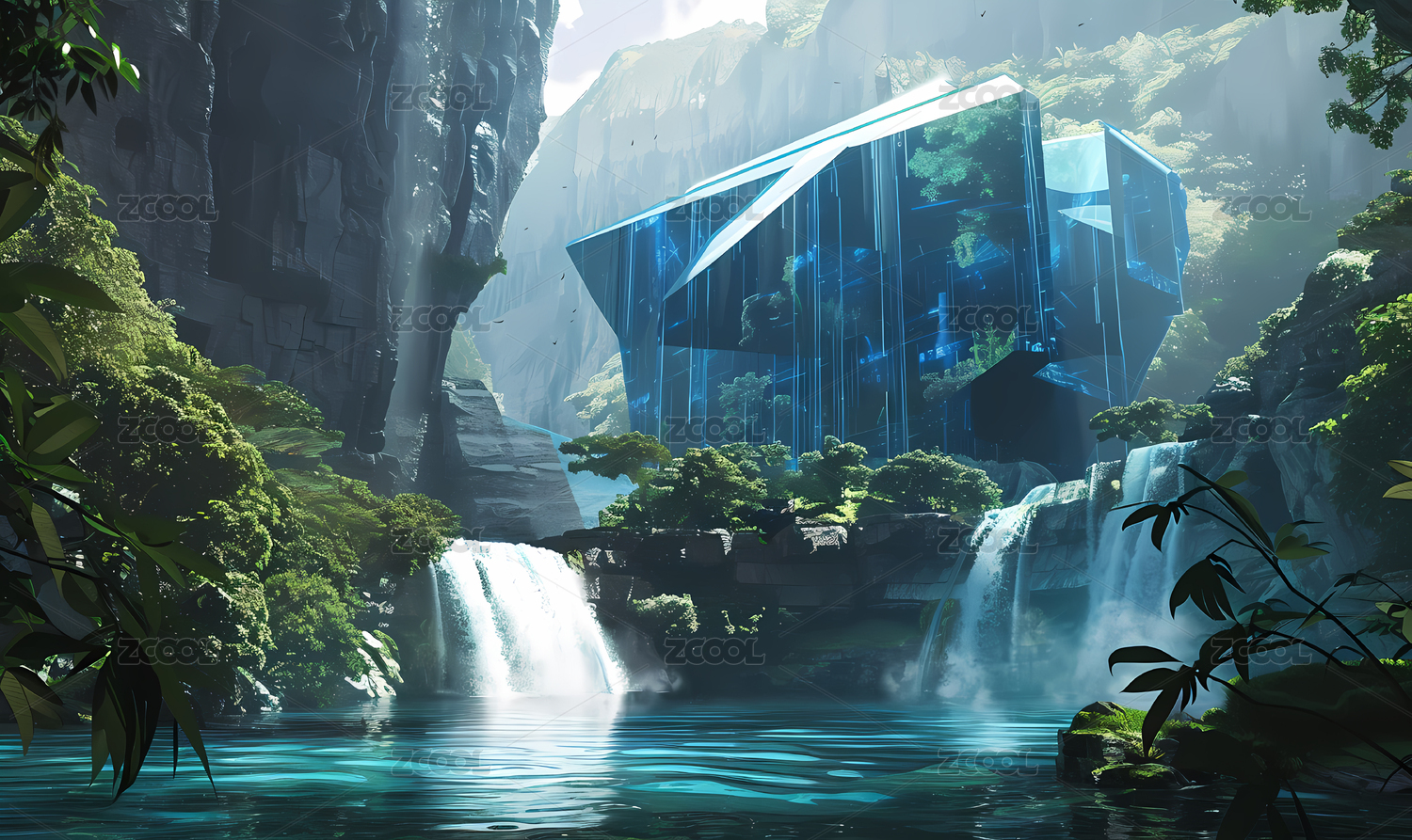 城市,建筑,科技,绿色,环境,瀑布,未来