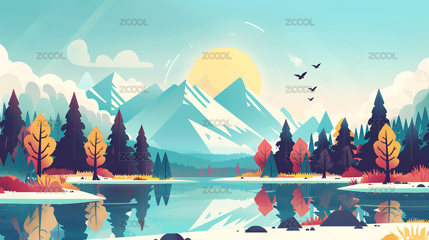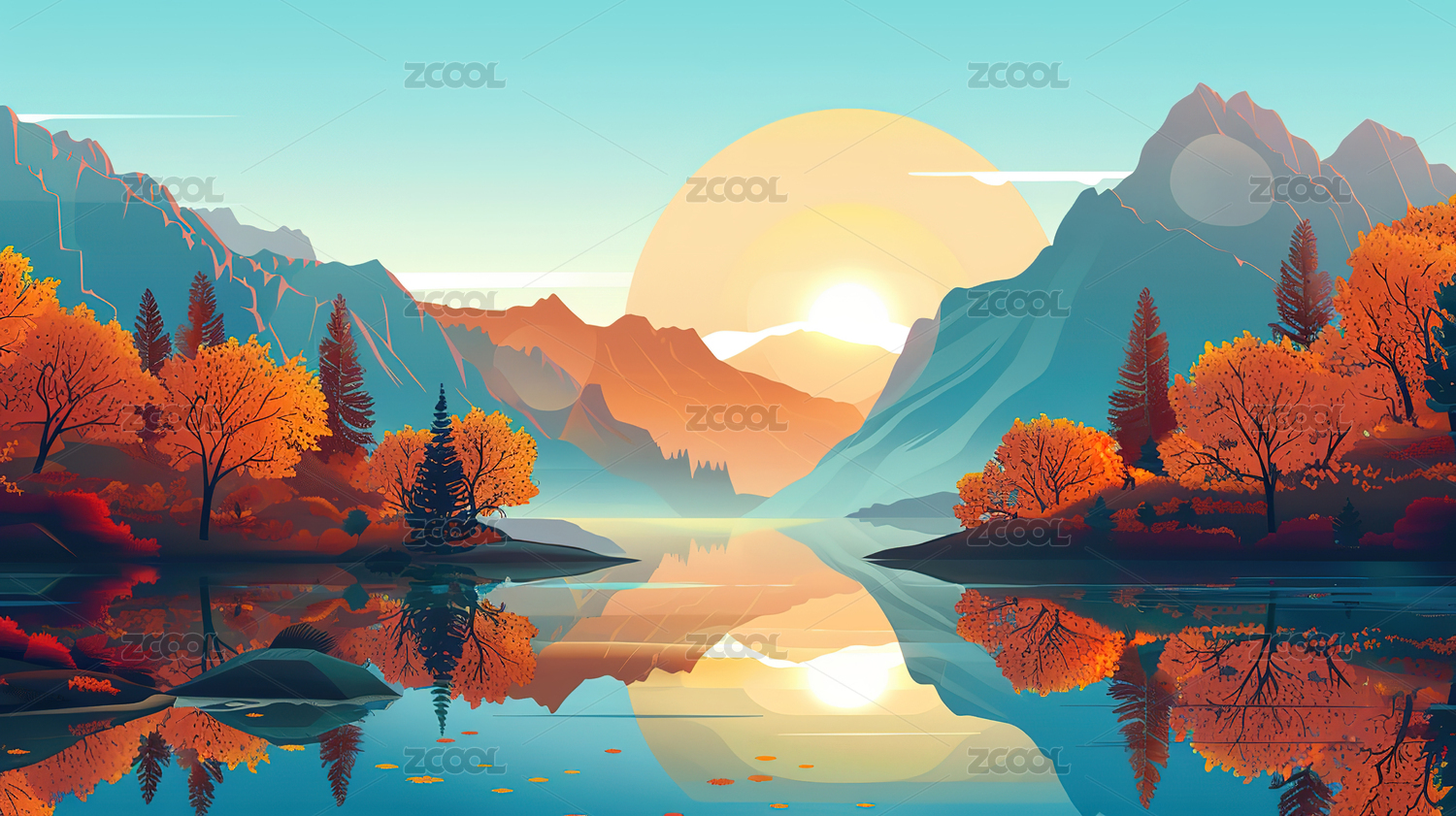 秋天秋季立秋秋分自然户外风景卡通漫画插画