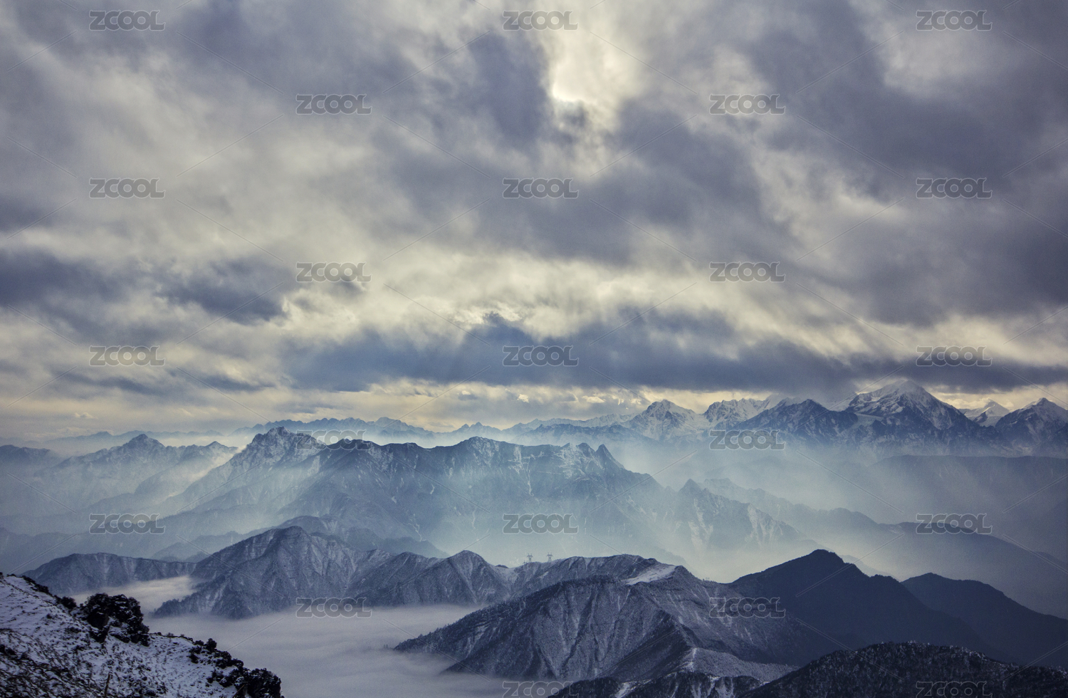 中国四川省雅安市荥经县牛背山云海雪山风景