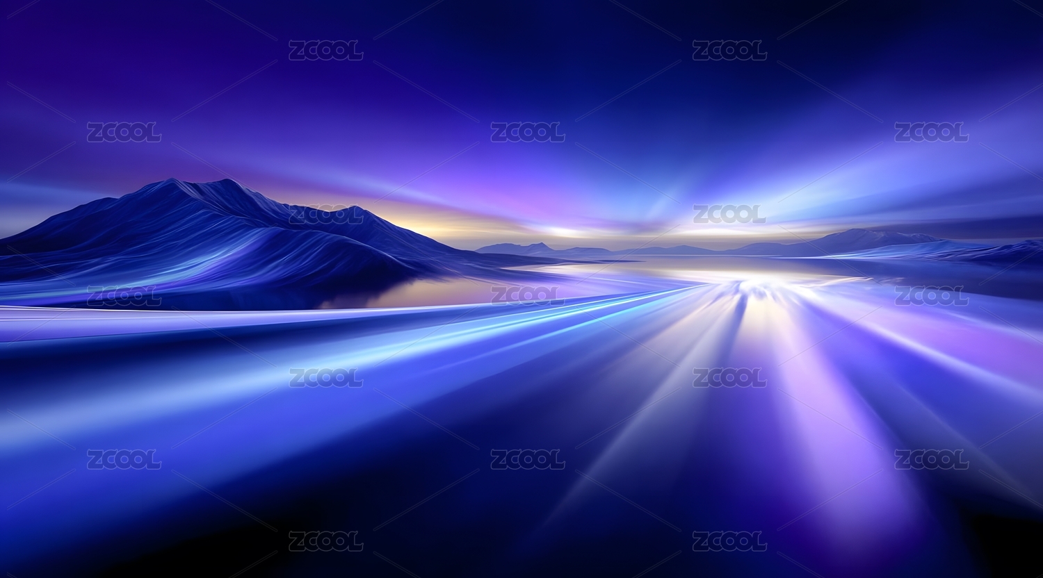 紫色光束穿透山峦的梦幻风景