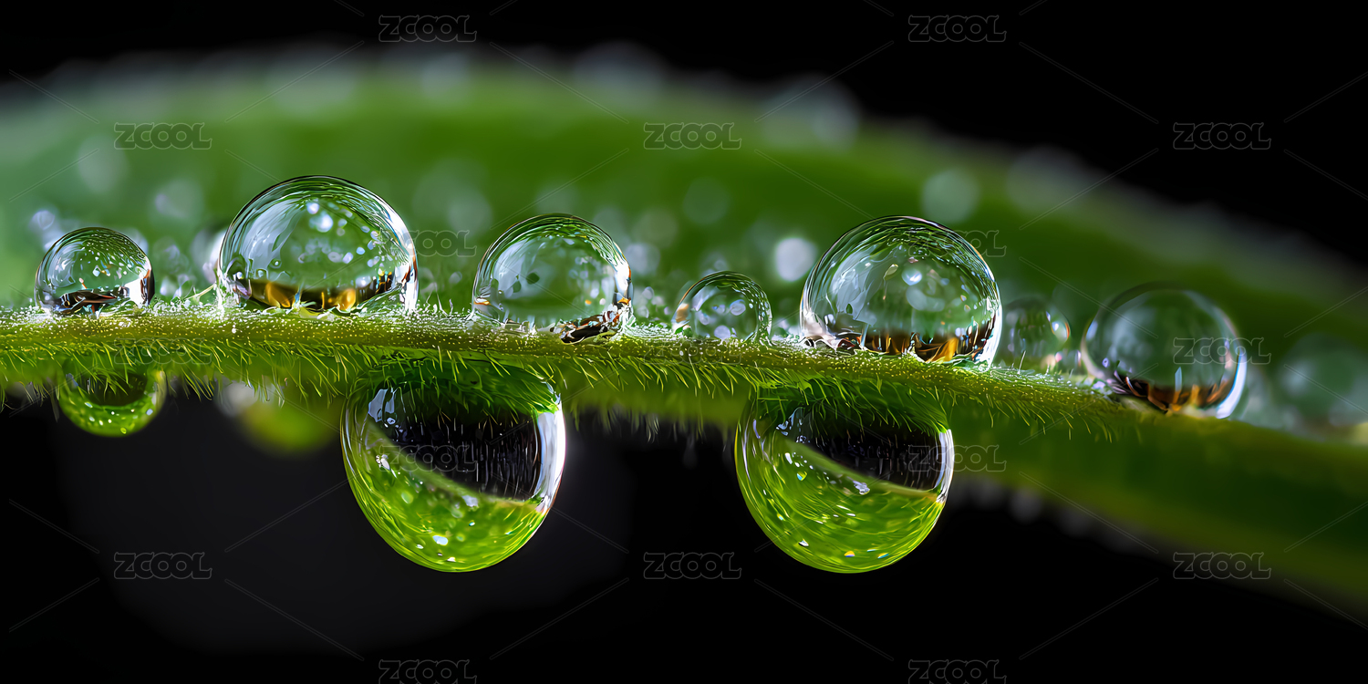 晶莹剔透的露珠与绿叶