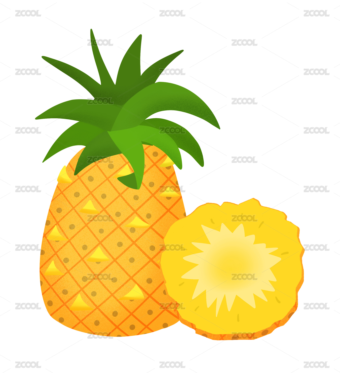 手绘扁平风格菠萝凤梨水果插画商用素材