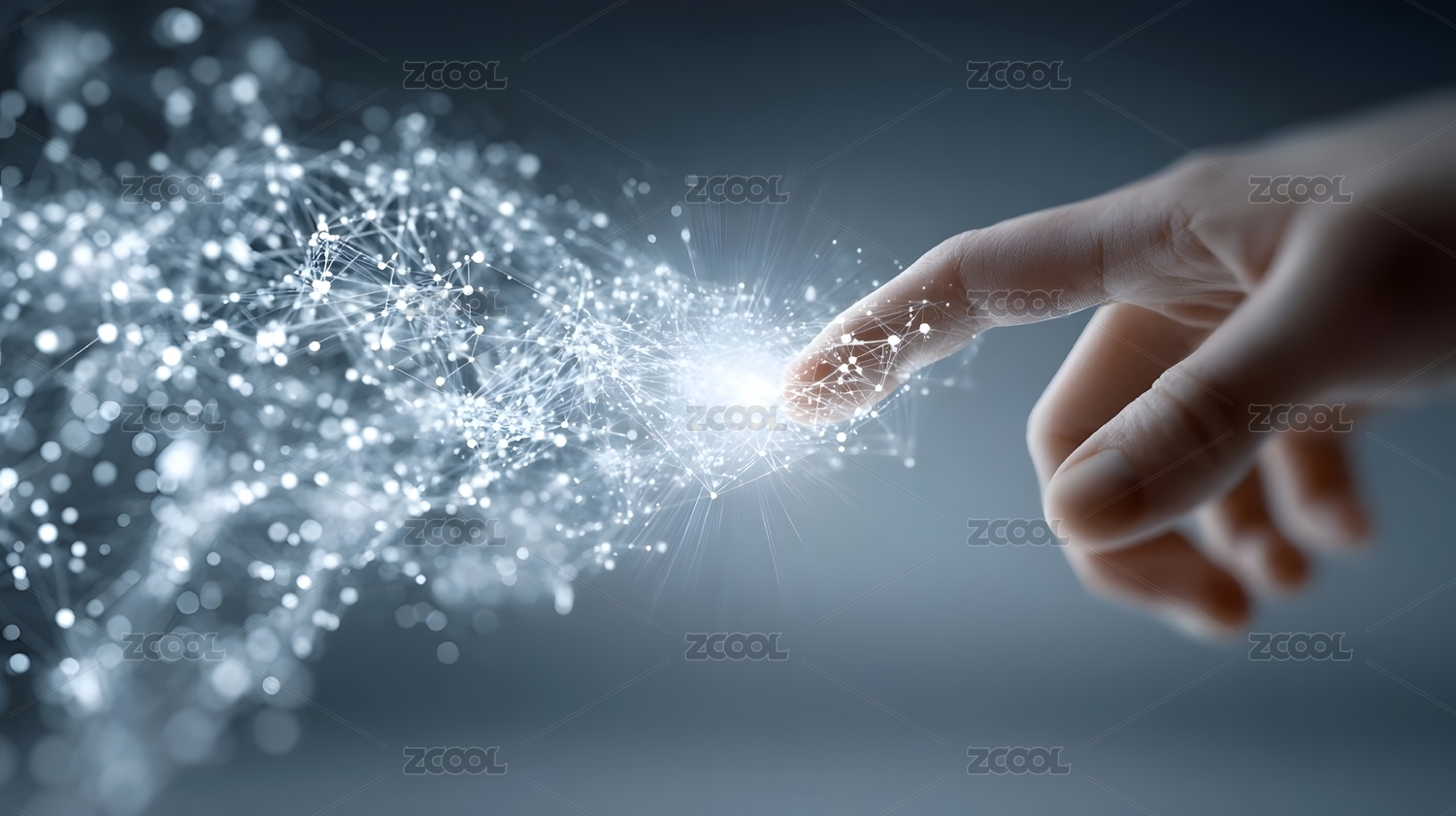 数字手指触碰光点释放数据粒子