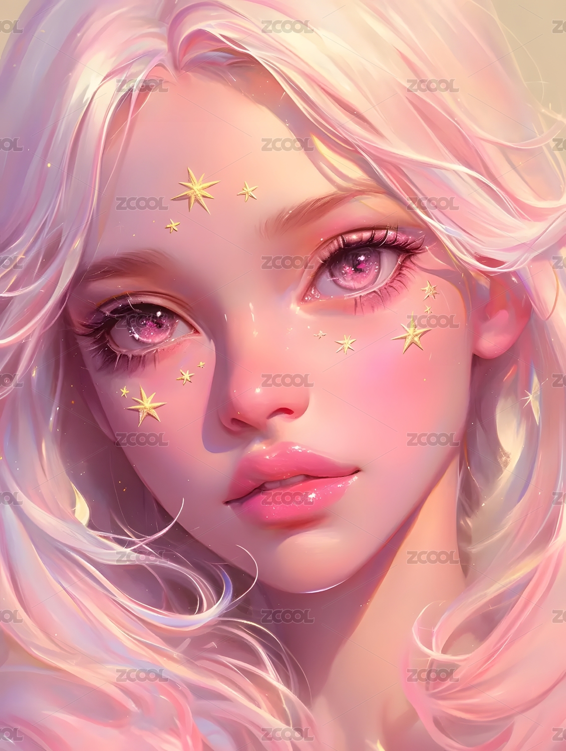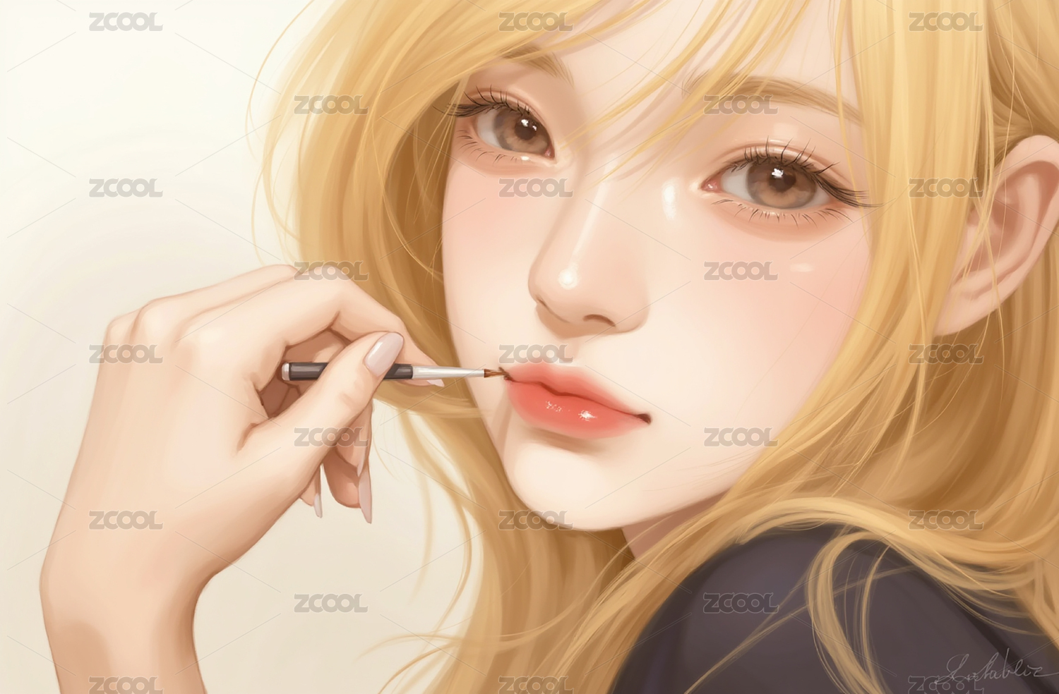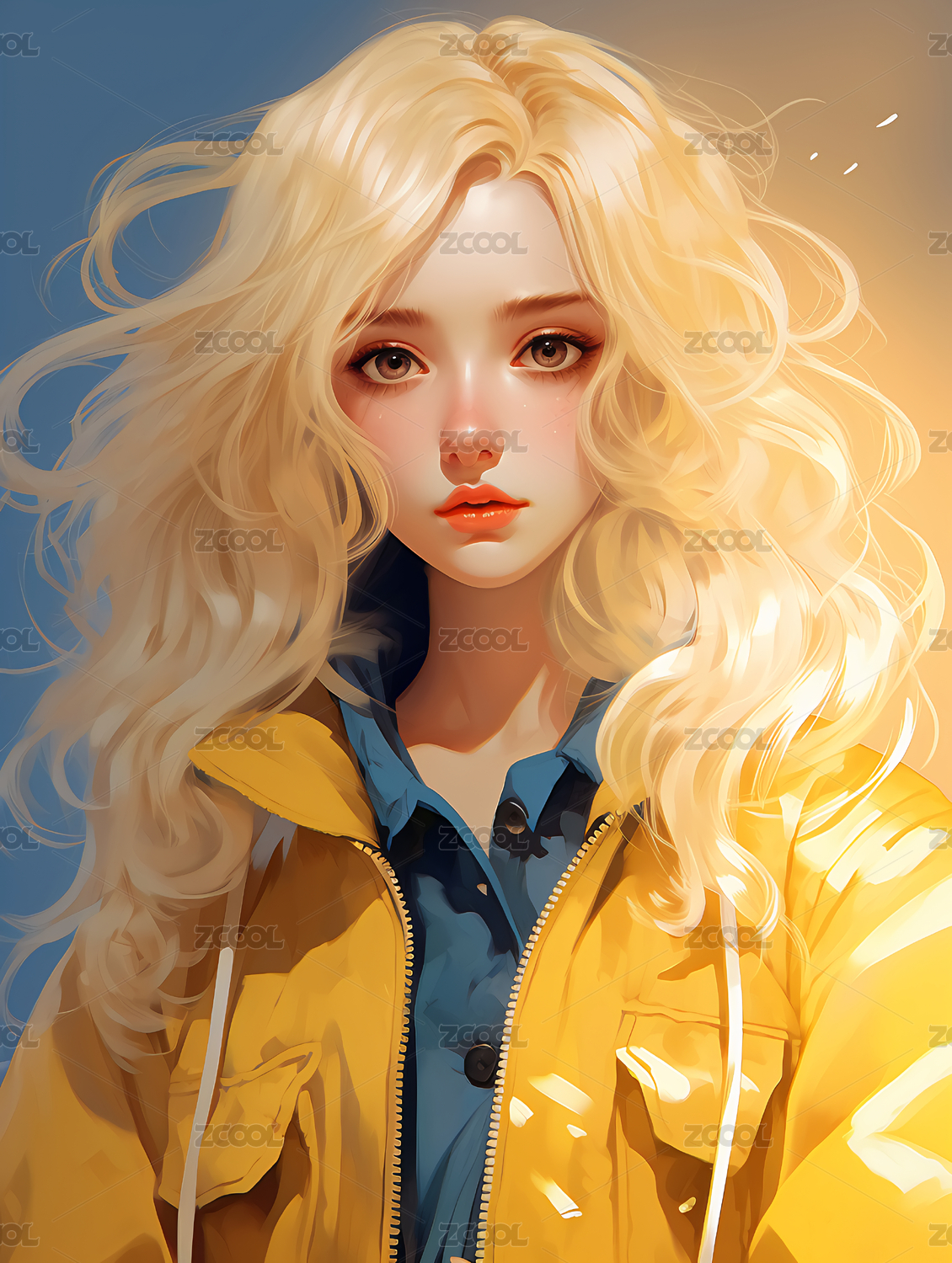 厚涂金发女孩插画