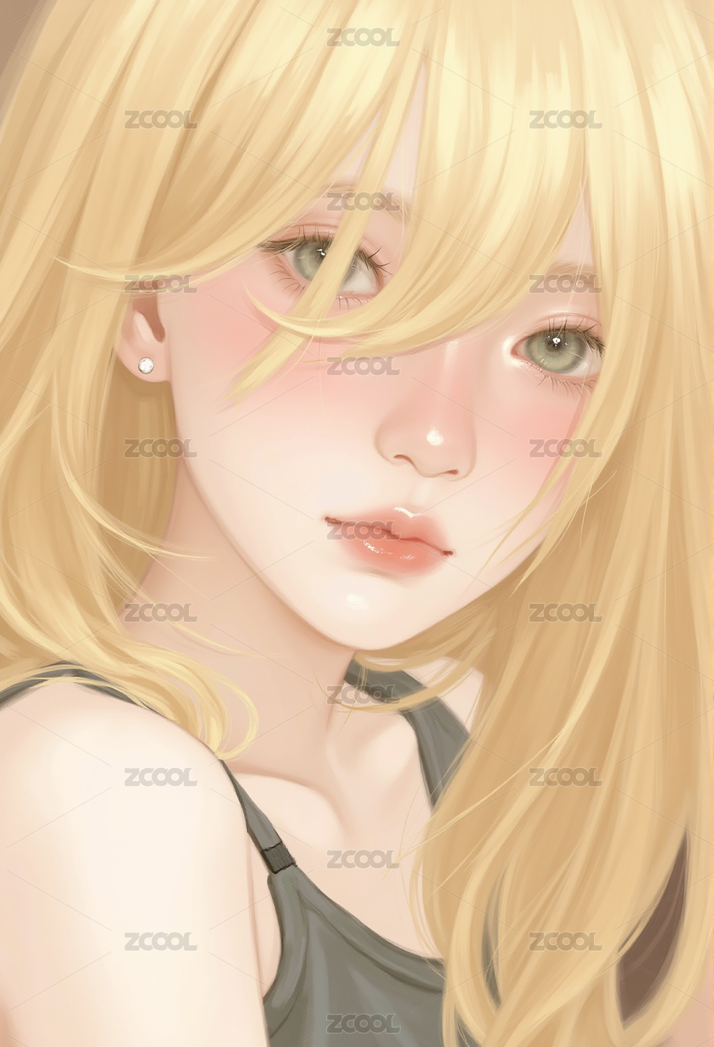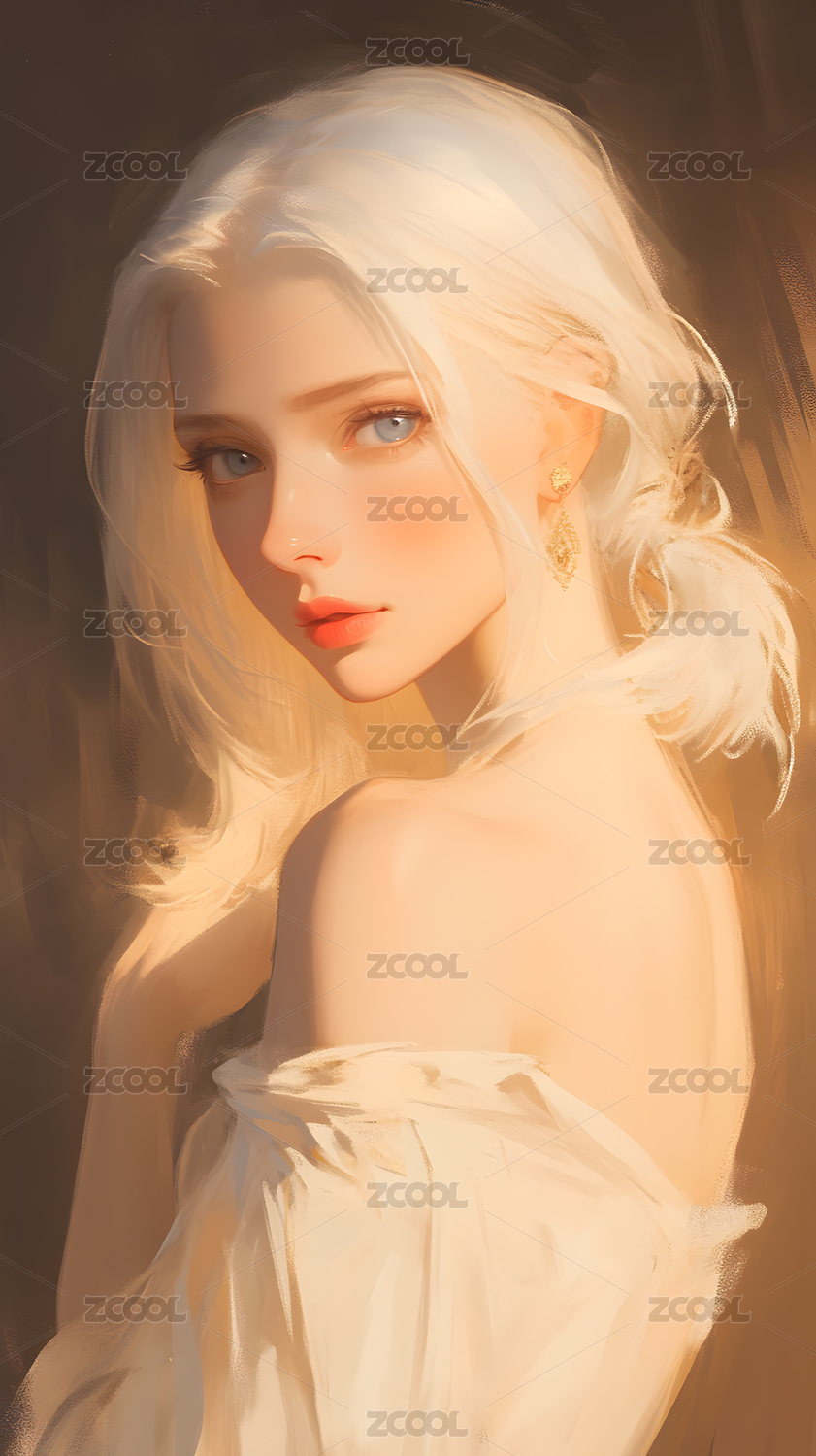 金发,美女,侧脸,竖构图,美丽,厚涂,插画,美人,少女,女孩