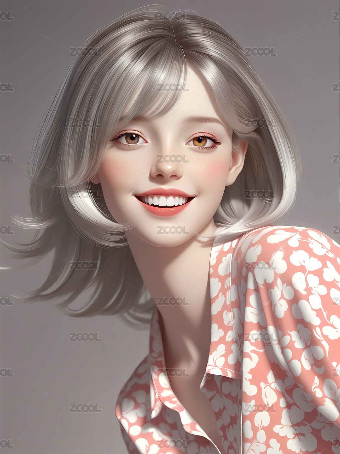 复古3D立体银发美女卡通插画