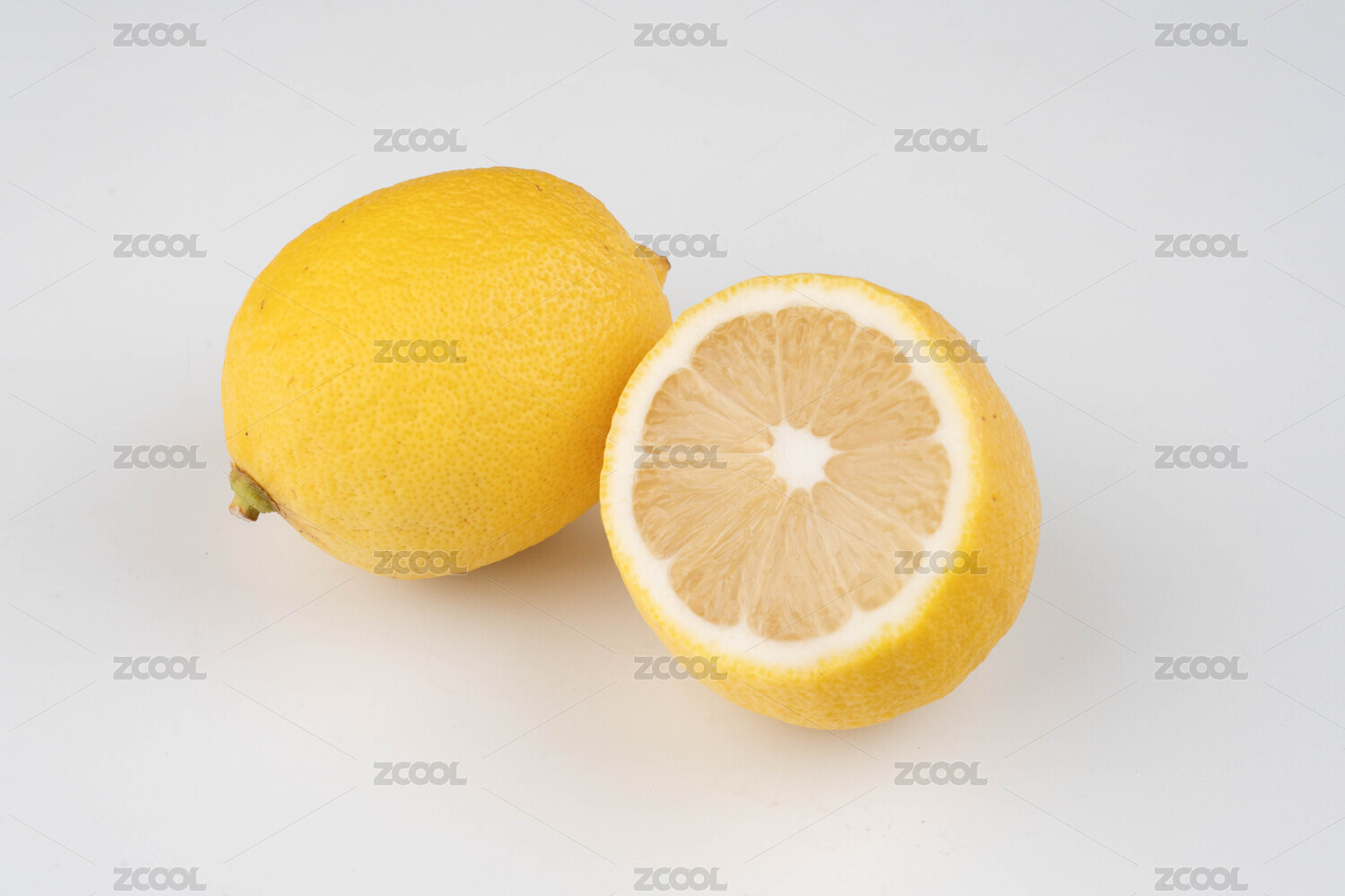 白色背景上摆放的新鲜水嫩柠檬及切片
