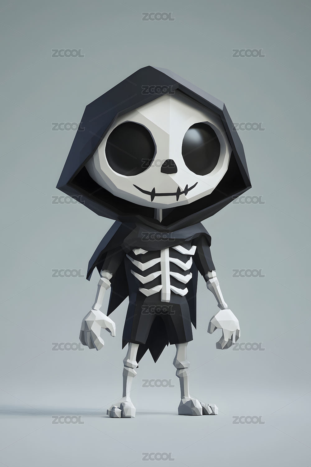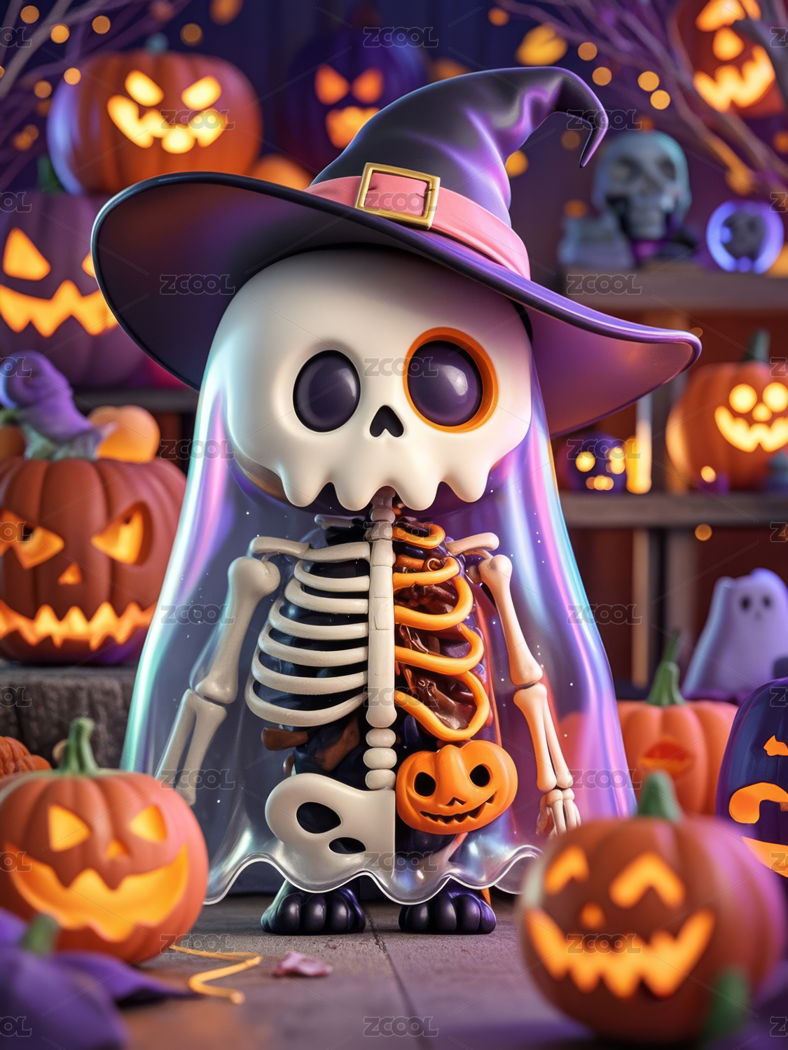 可爱骷髅3D万圣节幽灵题材的插画