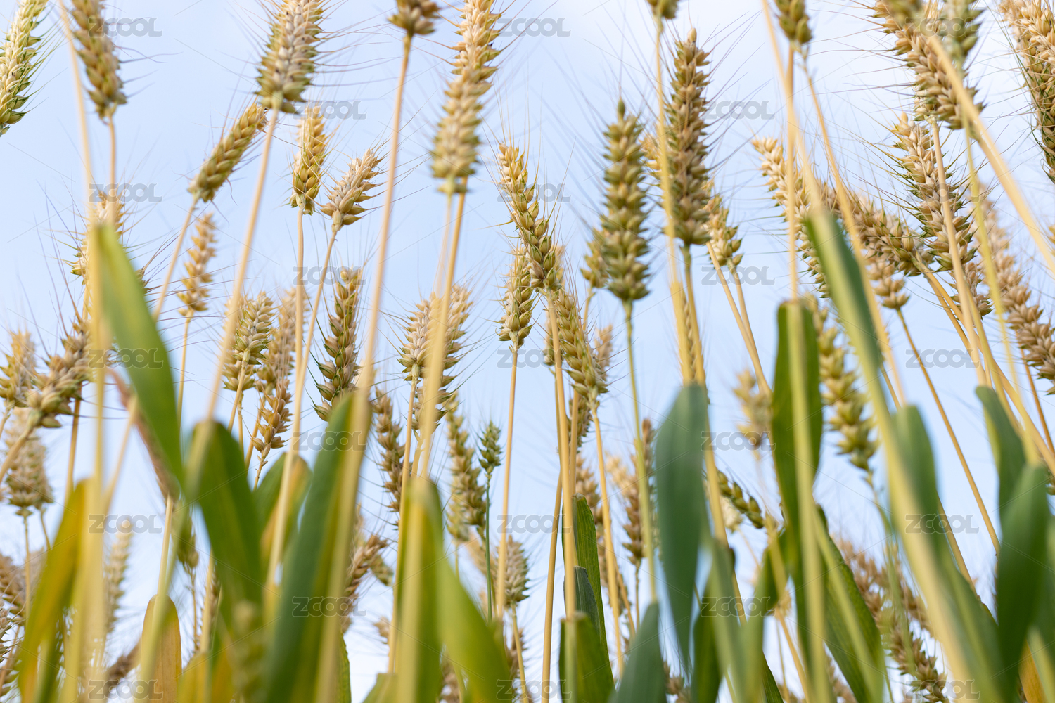 长出麦芒的小麦仰视视角完整特写