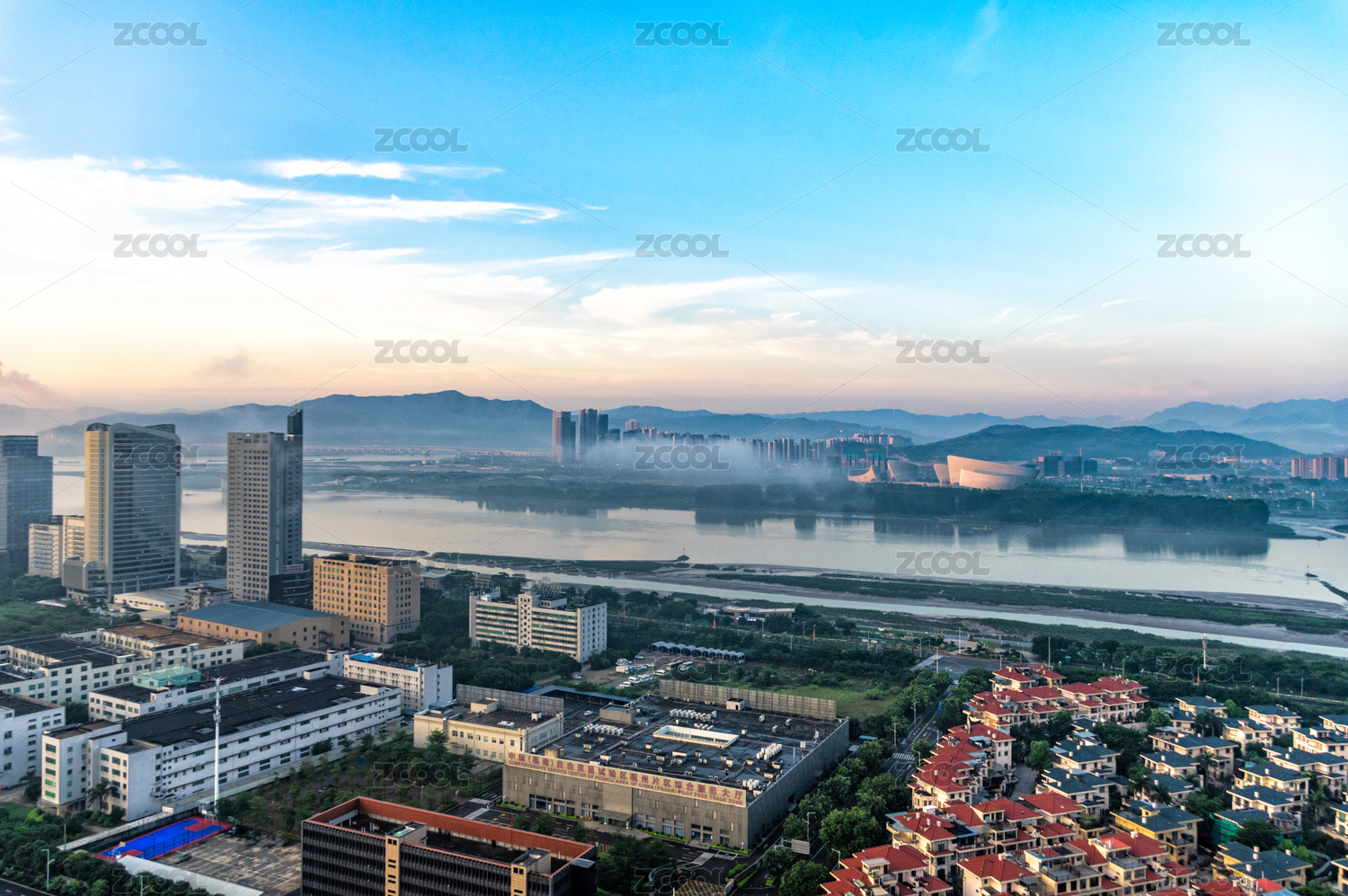 中国福州三江口新区日出时分风光