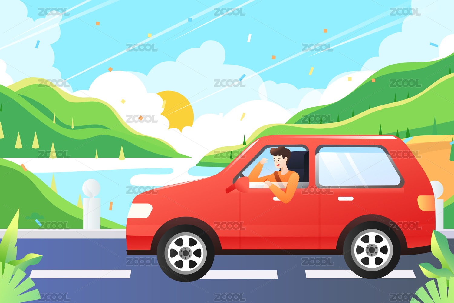 汽车旅游假期自驾游夏令营户外出行放假背景