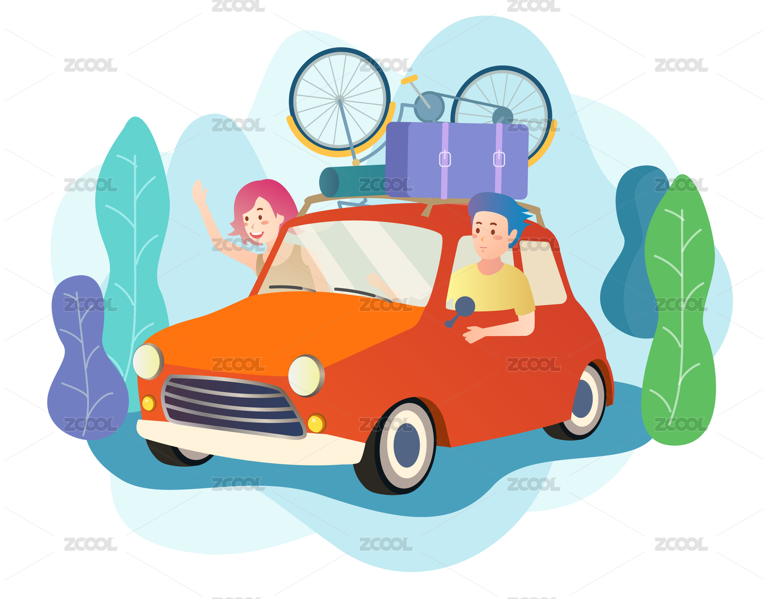 旅行,春游,旅游,自由行,自驾游,汽车,自行车,行李箱,结伴,租车