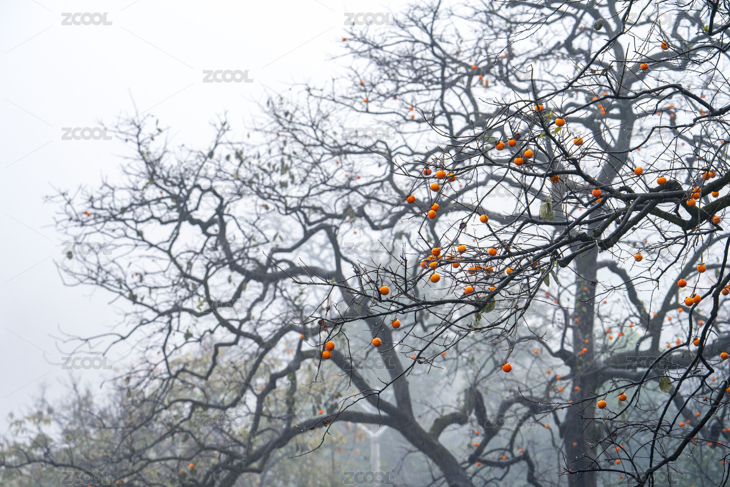 秋后山野里柿子树上的柿子