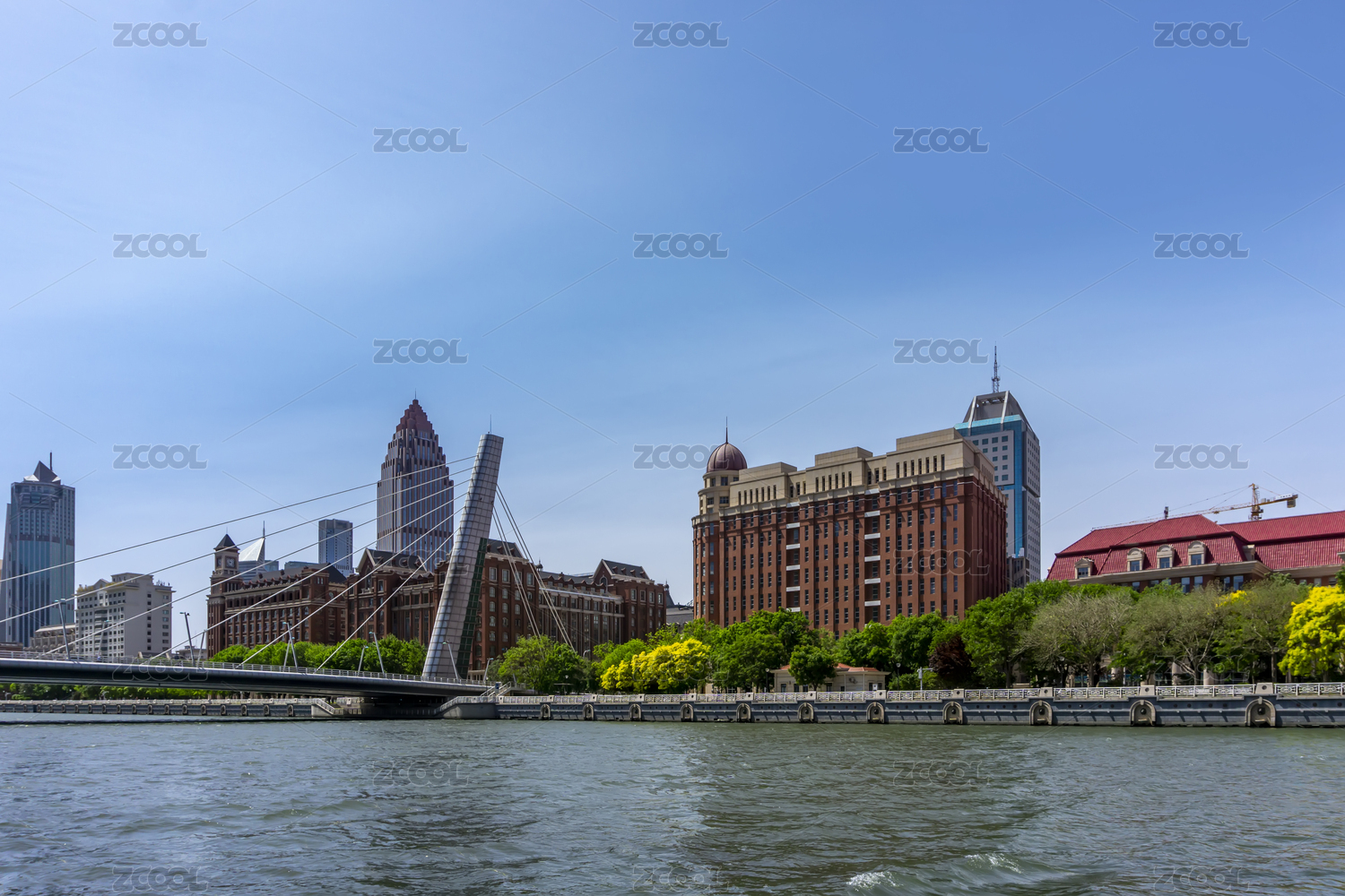 中国天津海河沿岸现代建筑景观