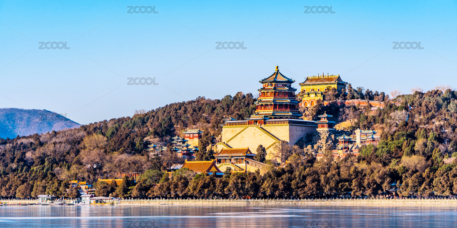 北京市颐和园昆明湖边万寿山佛香阁冬季风光