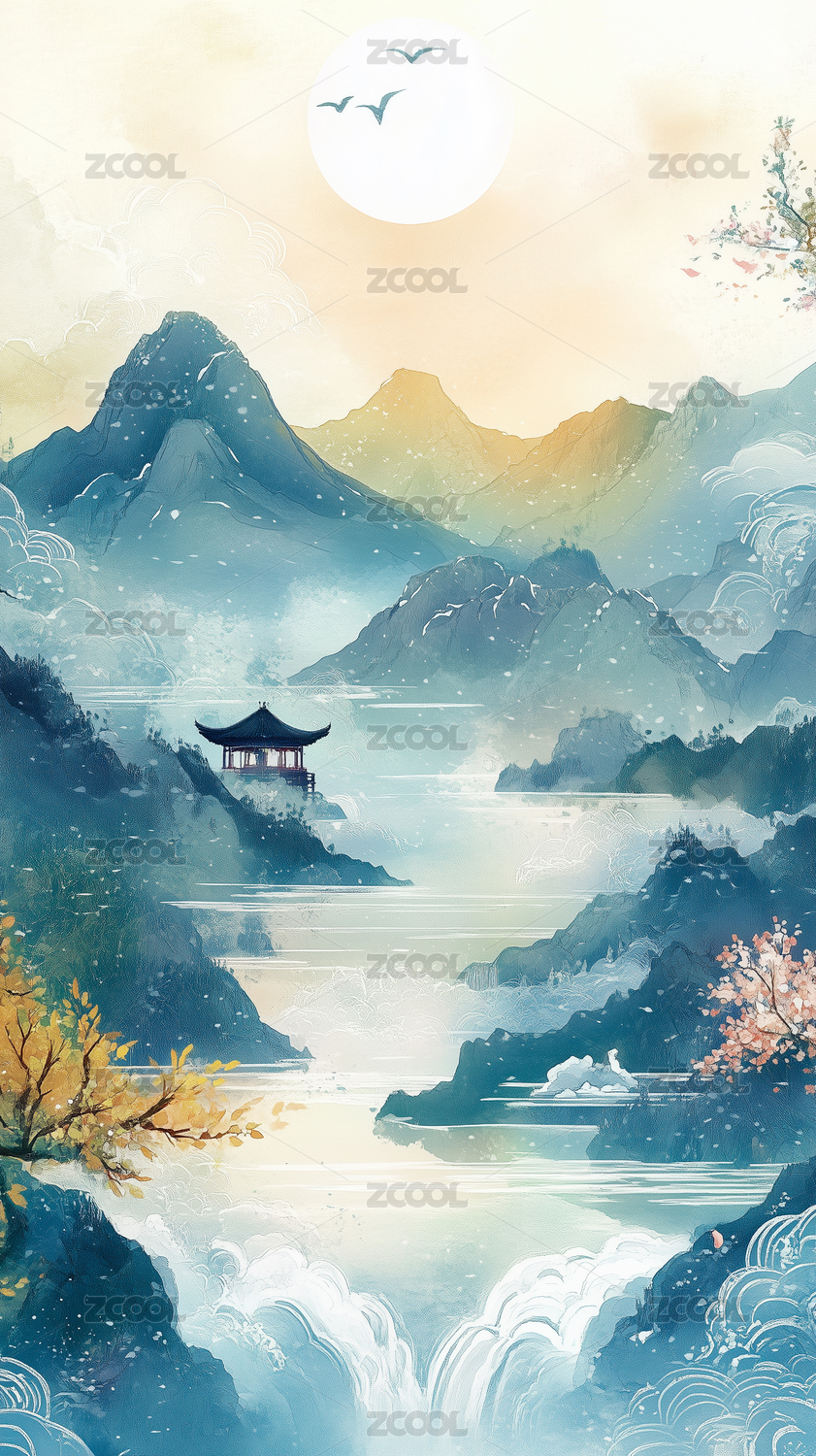 新中式国风山水水墨意境风景山水画