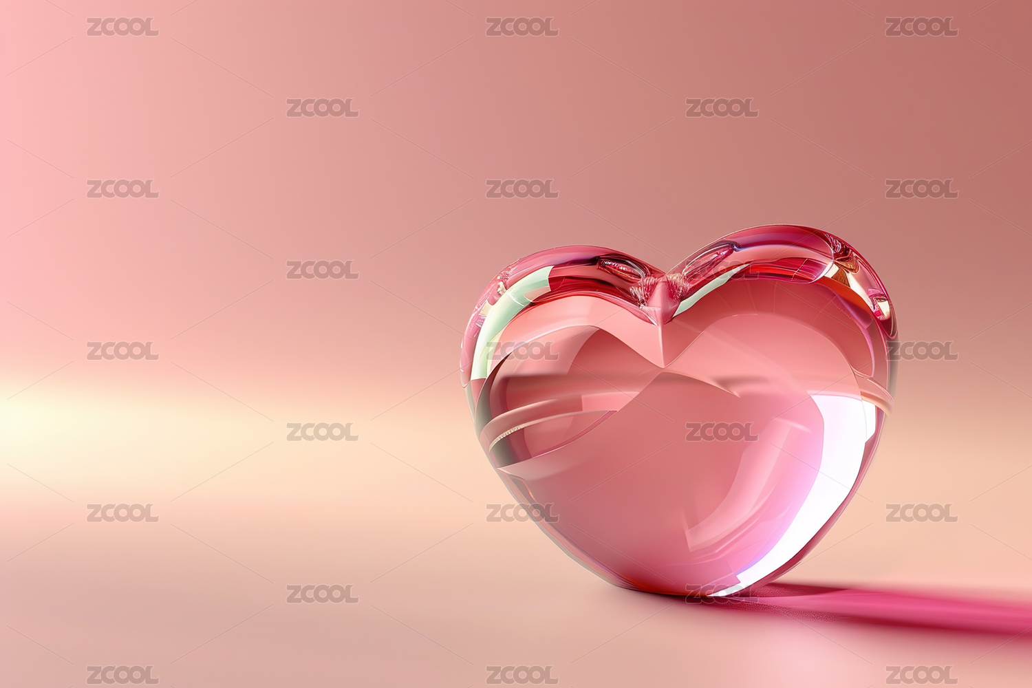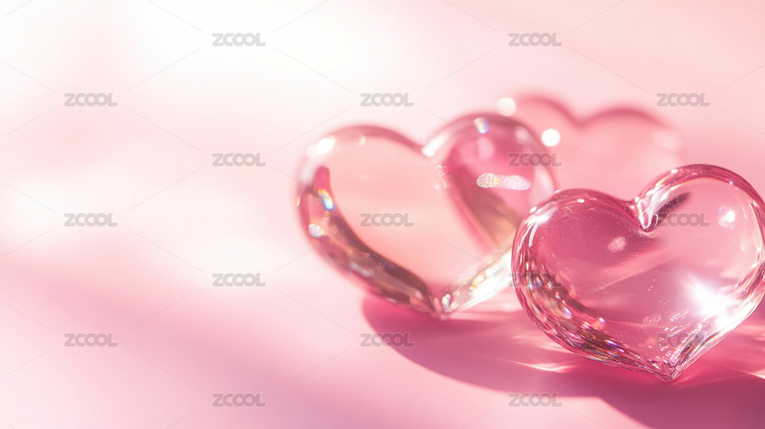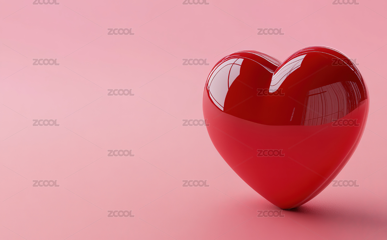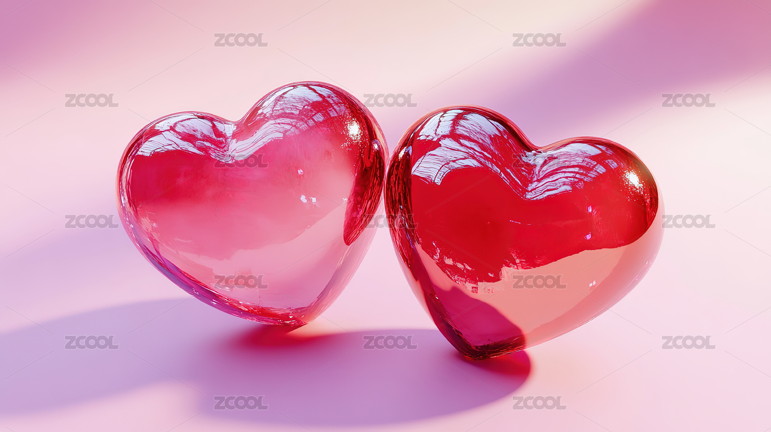 四个红色绒面质感心形漂浮在柔和米色背景上