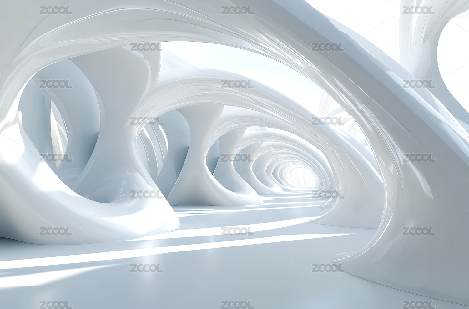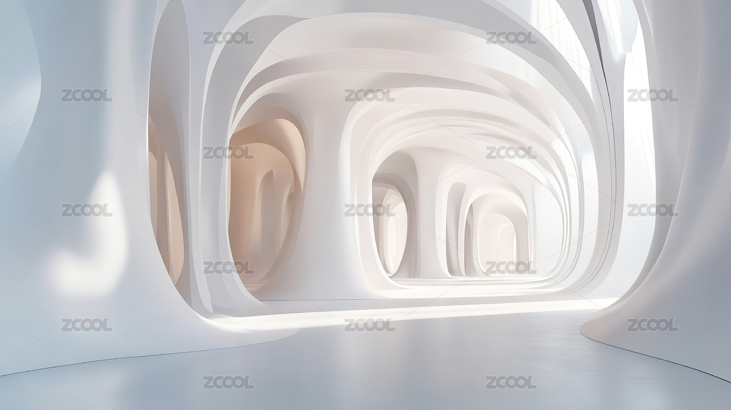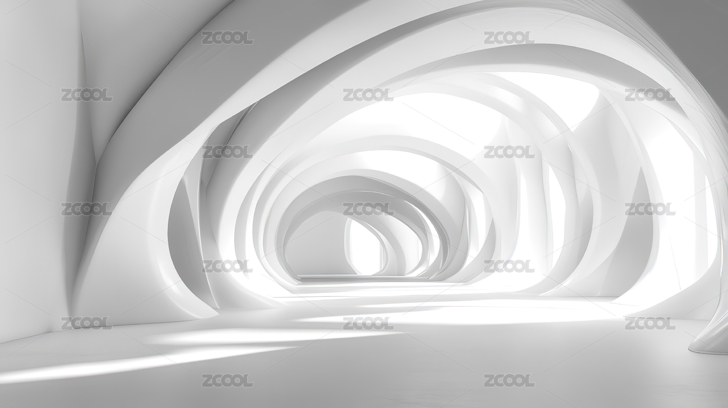 白色曲线隧道的现代建筑内部