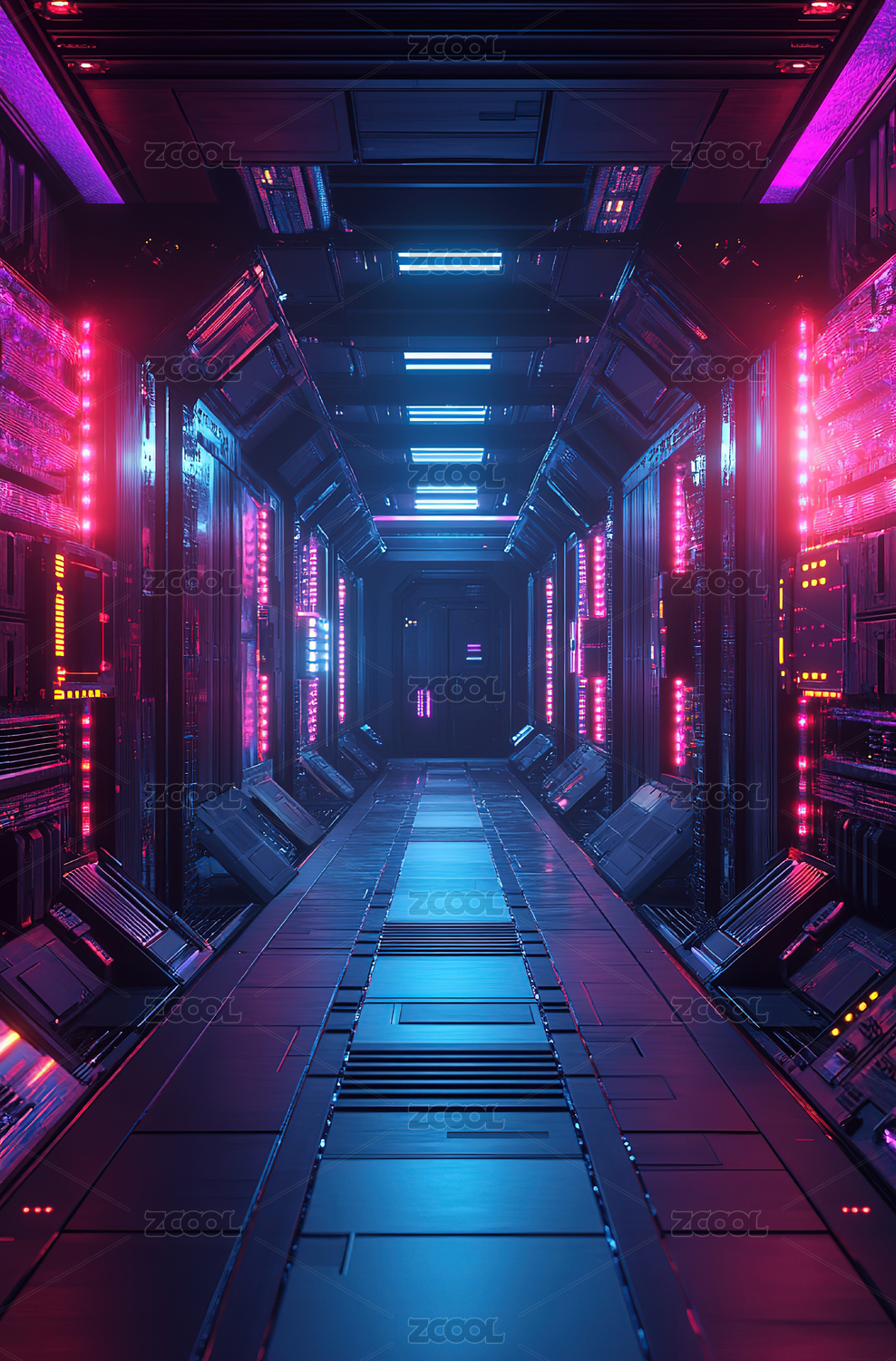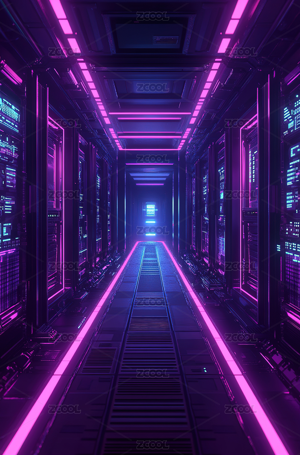 未来科技感数据中心走廊通道