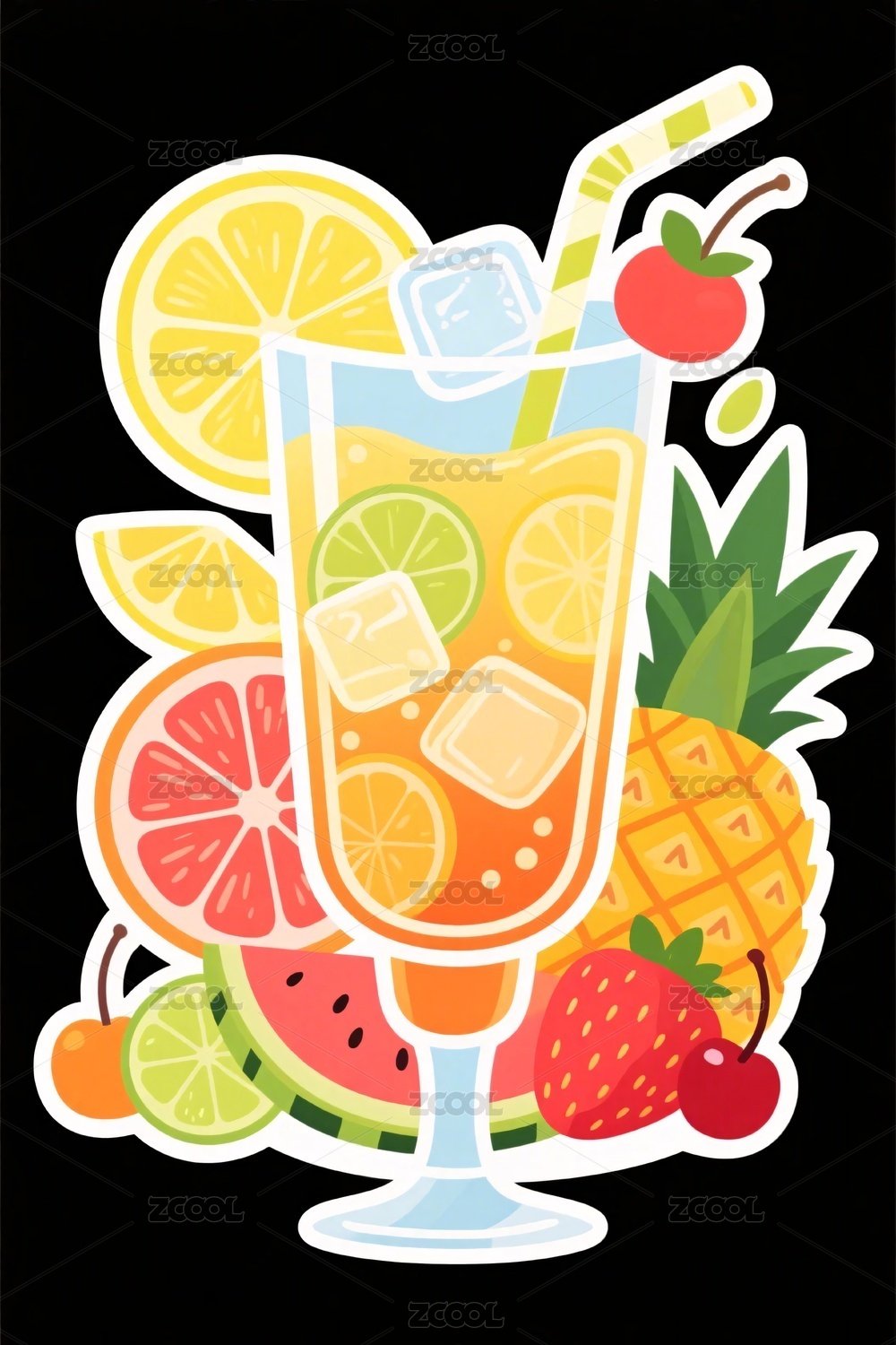 黑底透明玻璃杯中的水果饮料插画背景素材