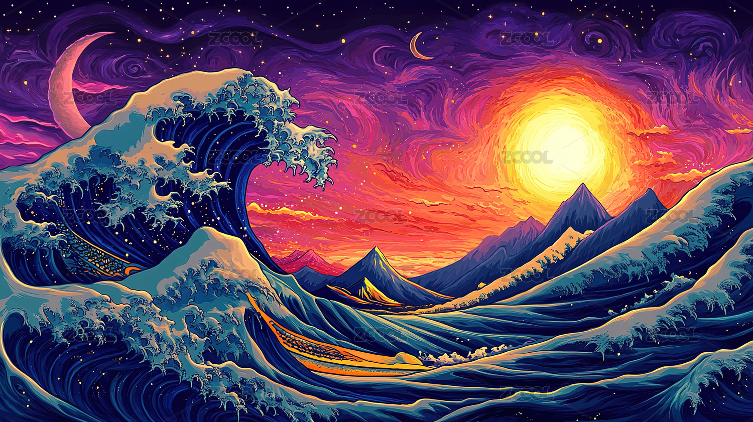 AI数字艺术,自然,户外,天空,无人,背景,树,插画,高山,设计