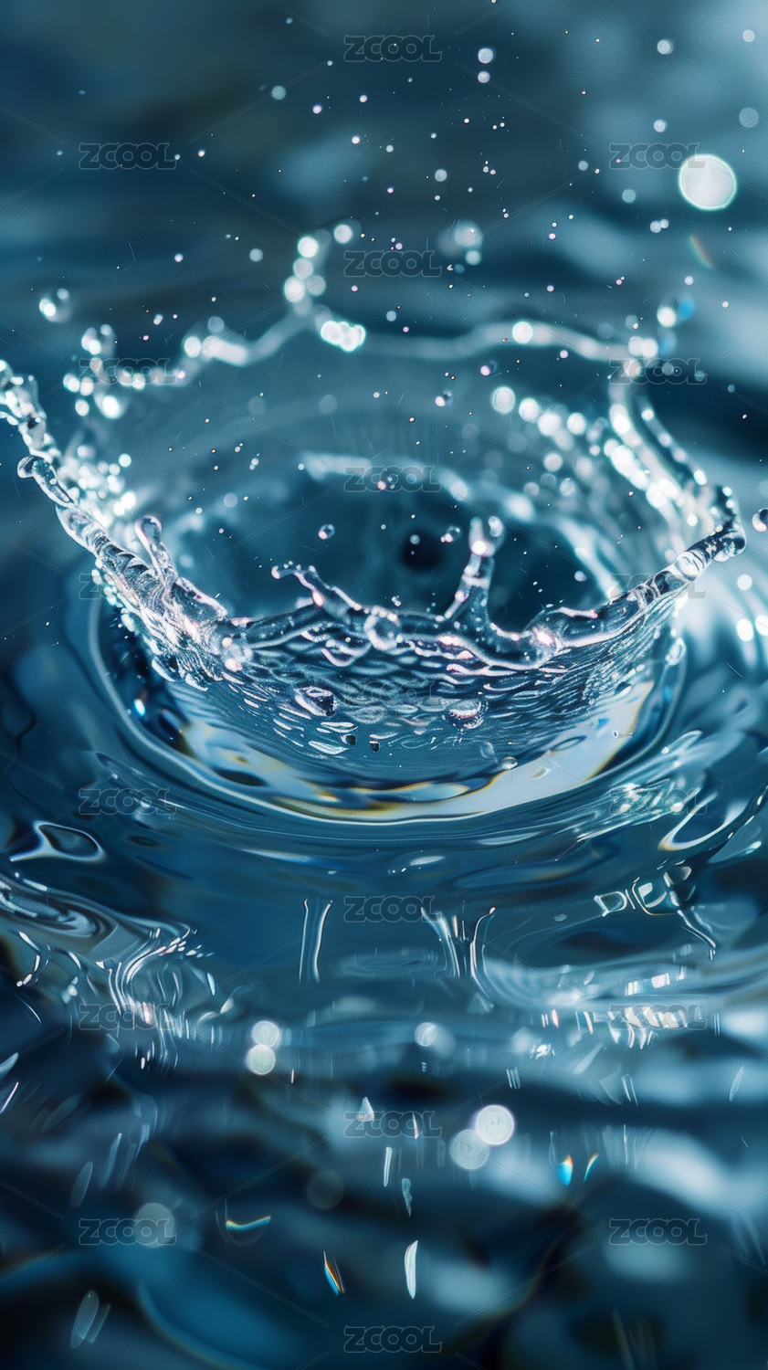 水滴撞击水面瞬间的动态景象