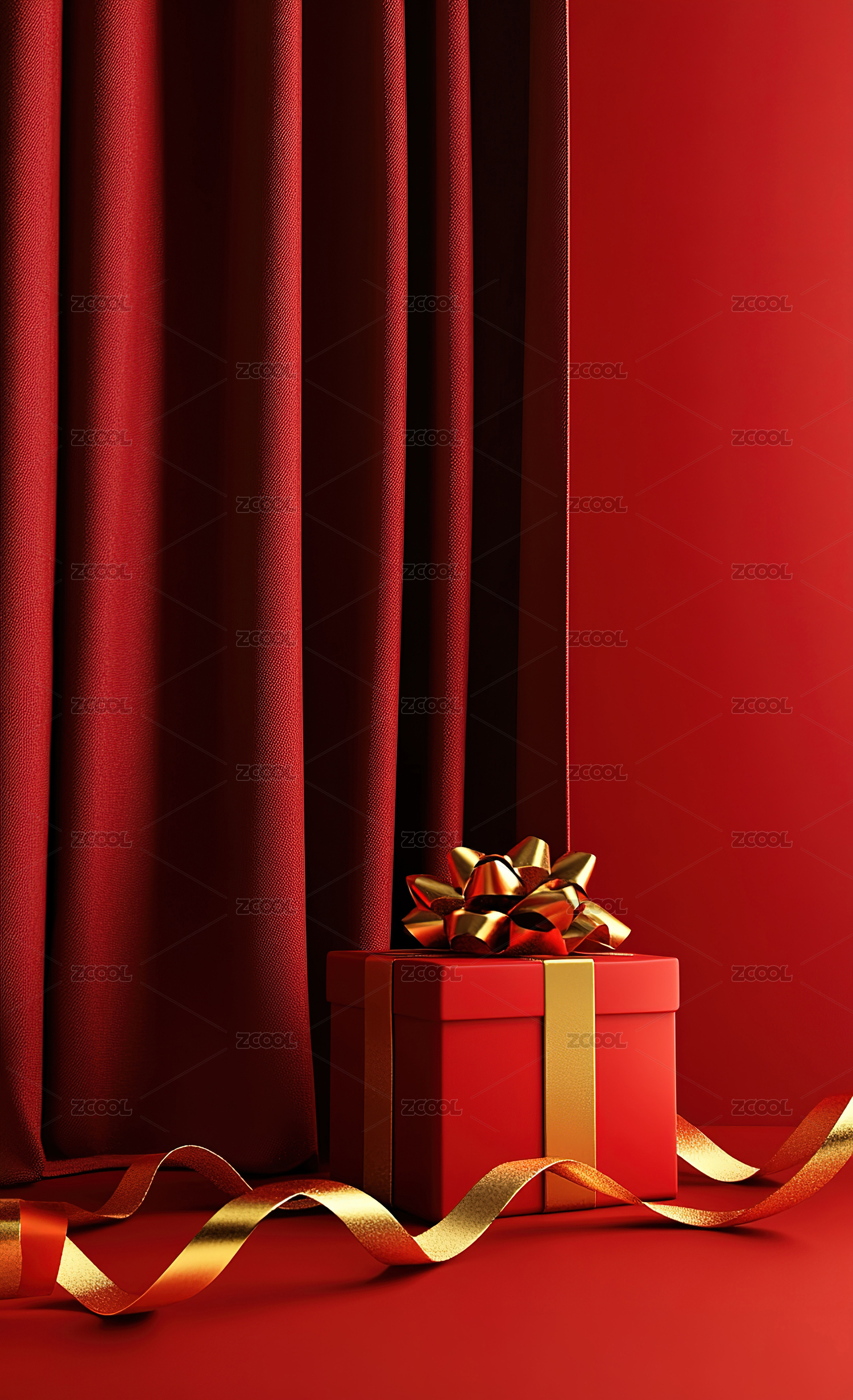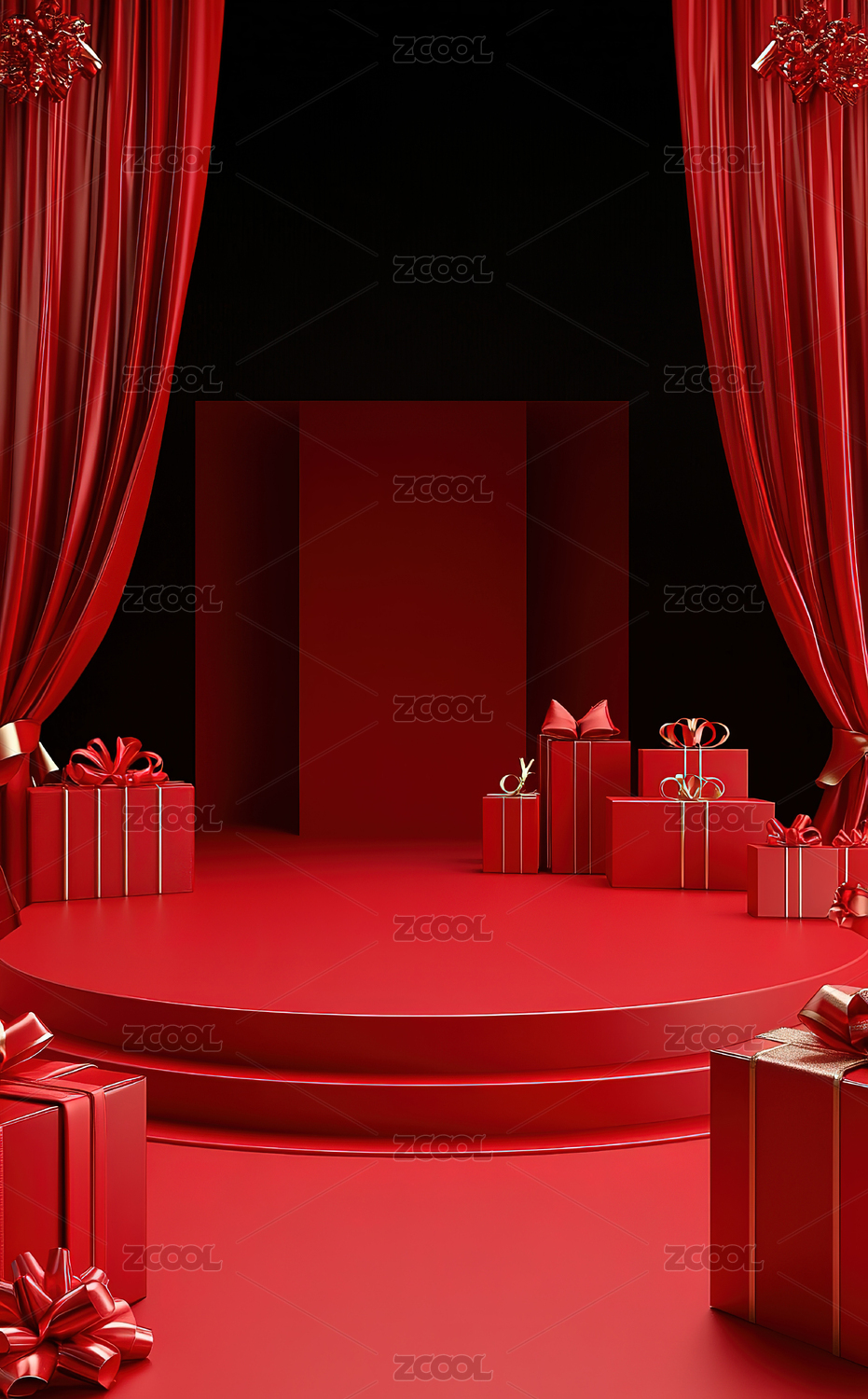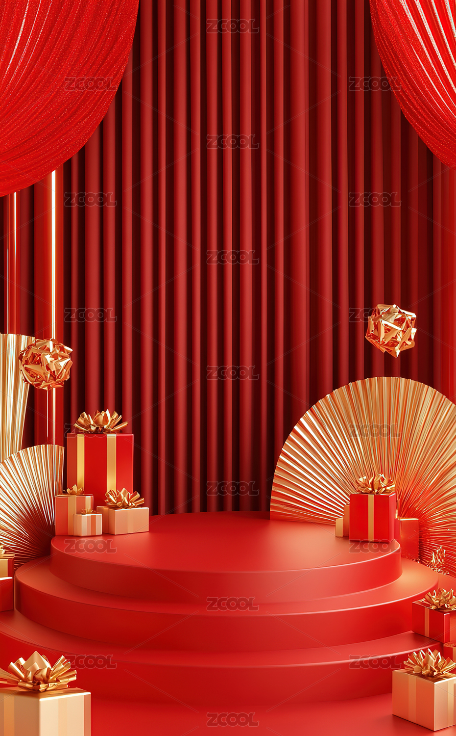 电商促销红色空间礼物场景