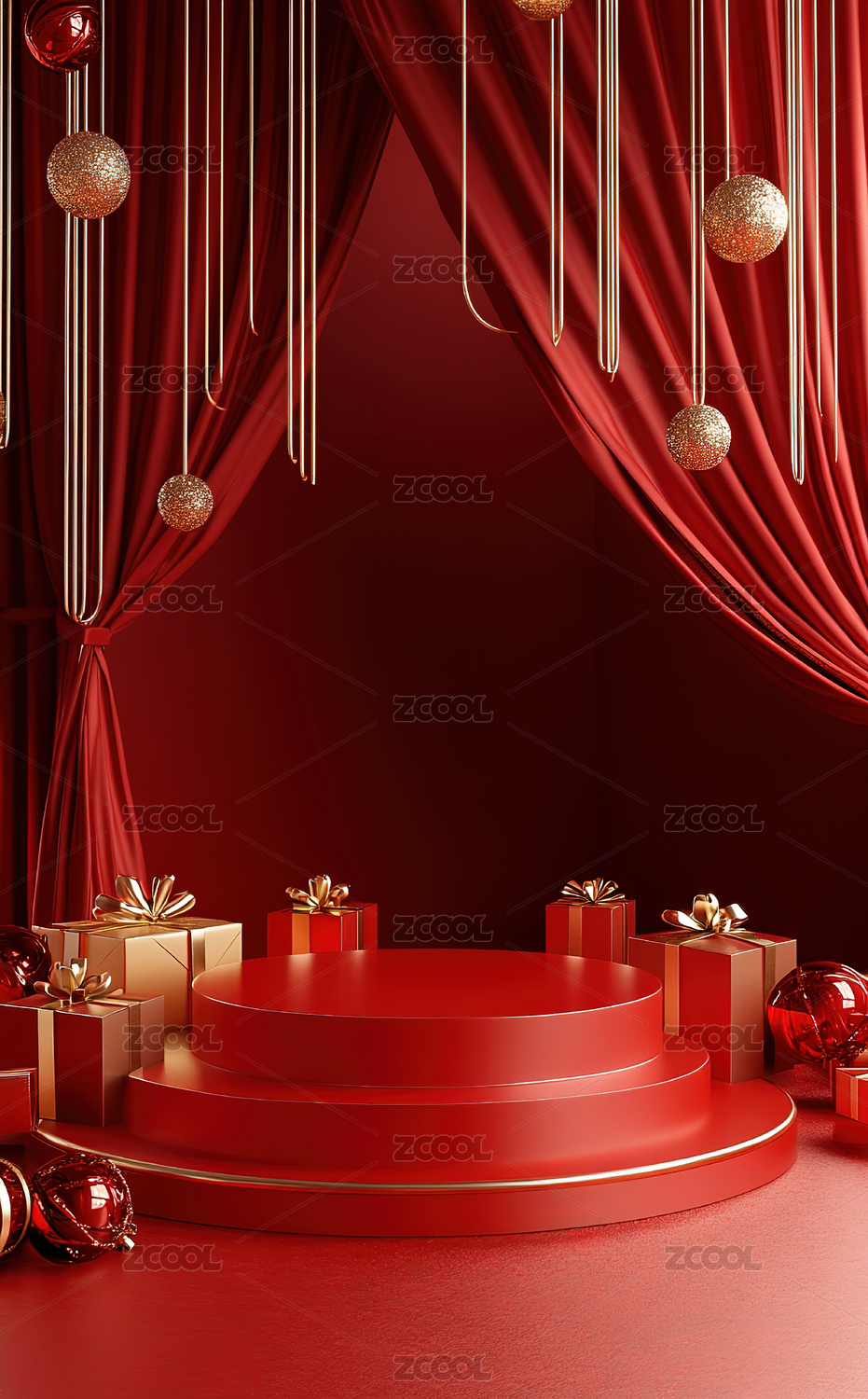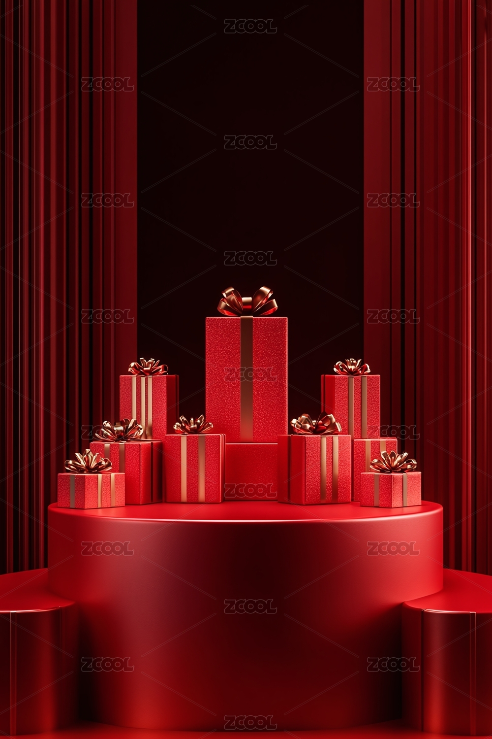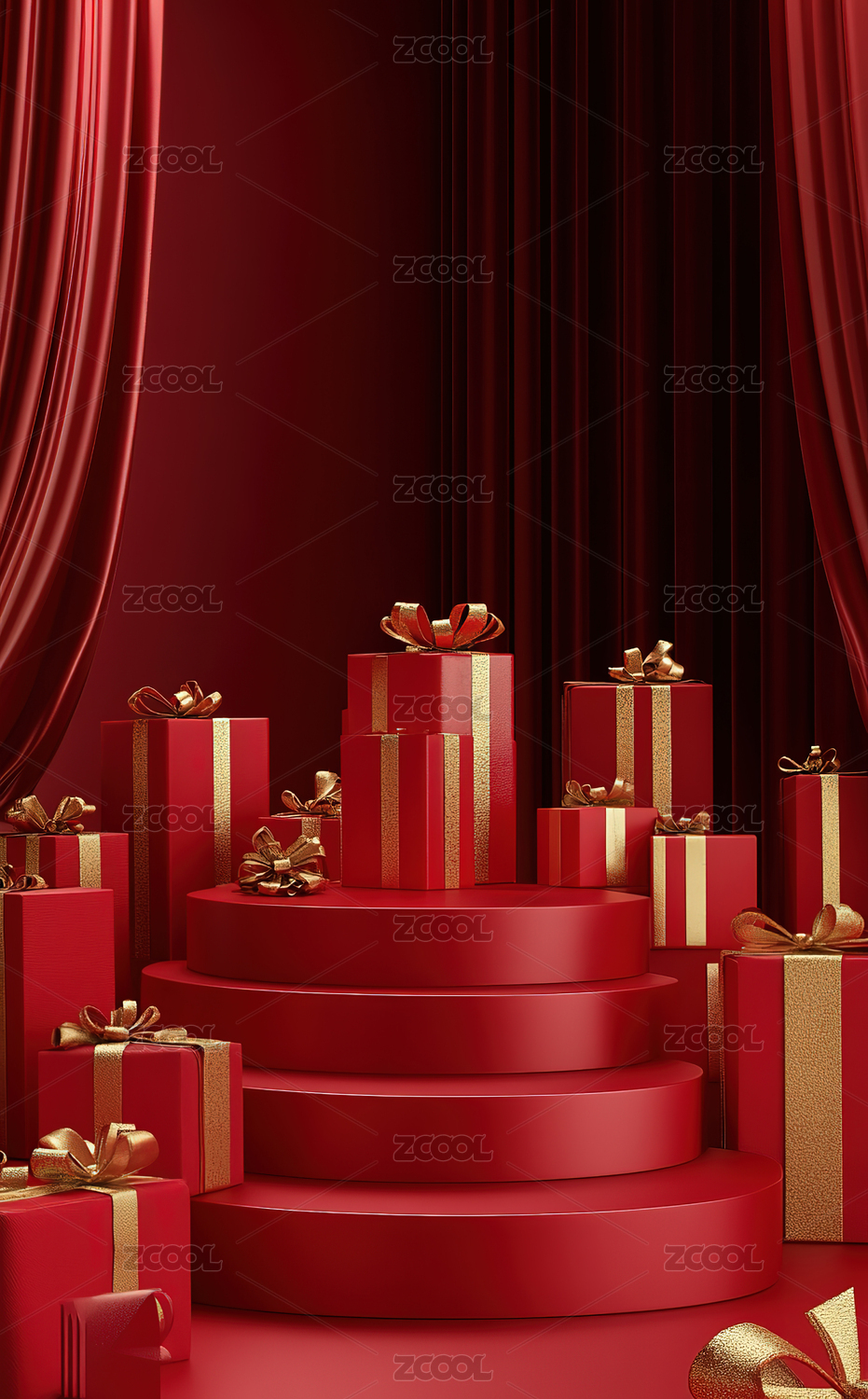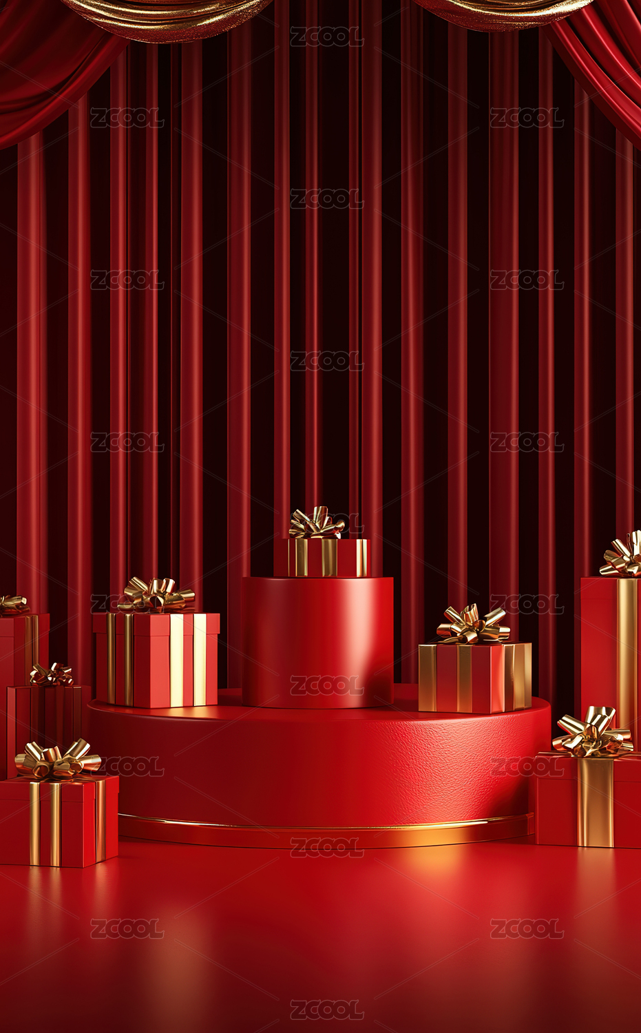 电商促销红色空间礼物场景