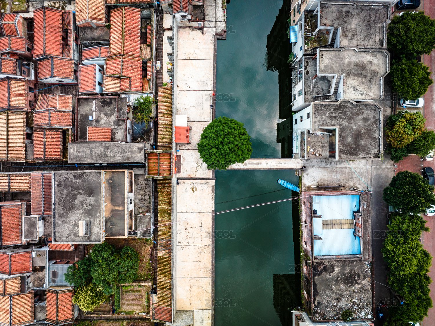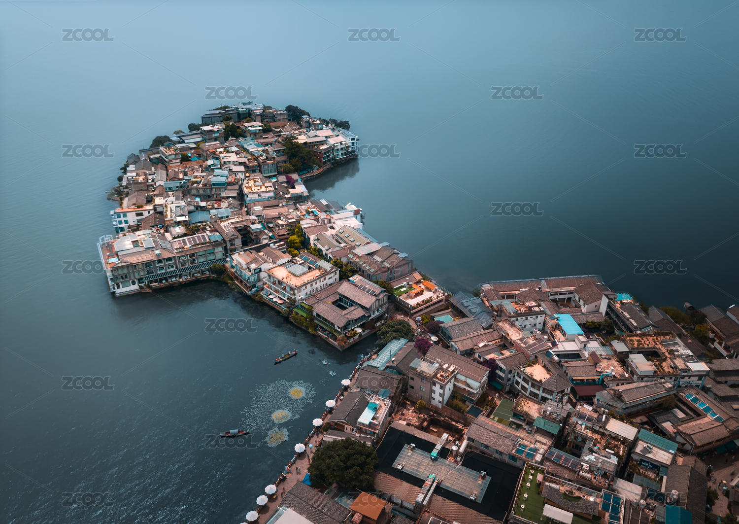 正上方视角航拍大理双廊古镇