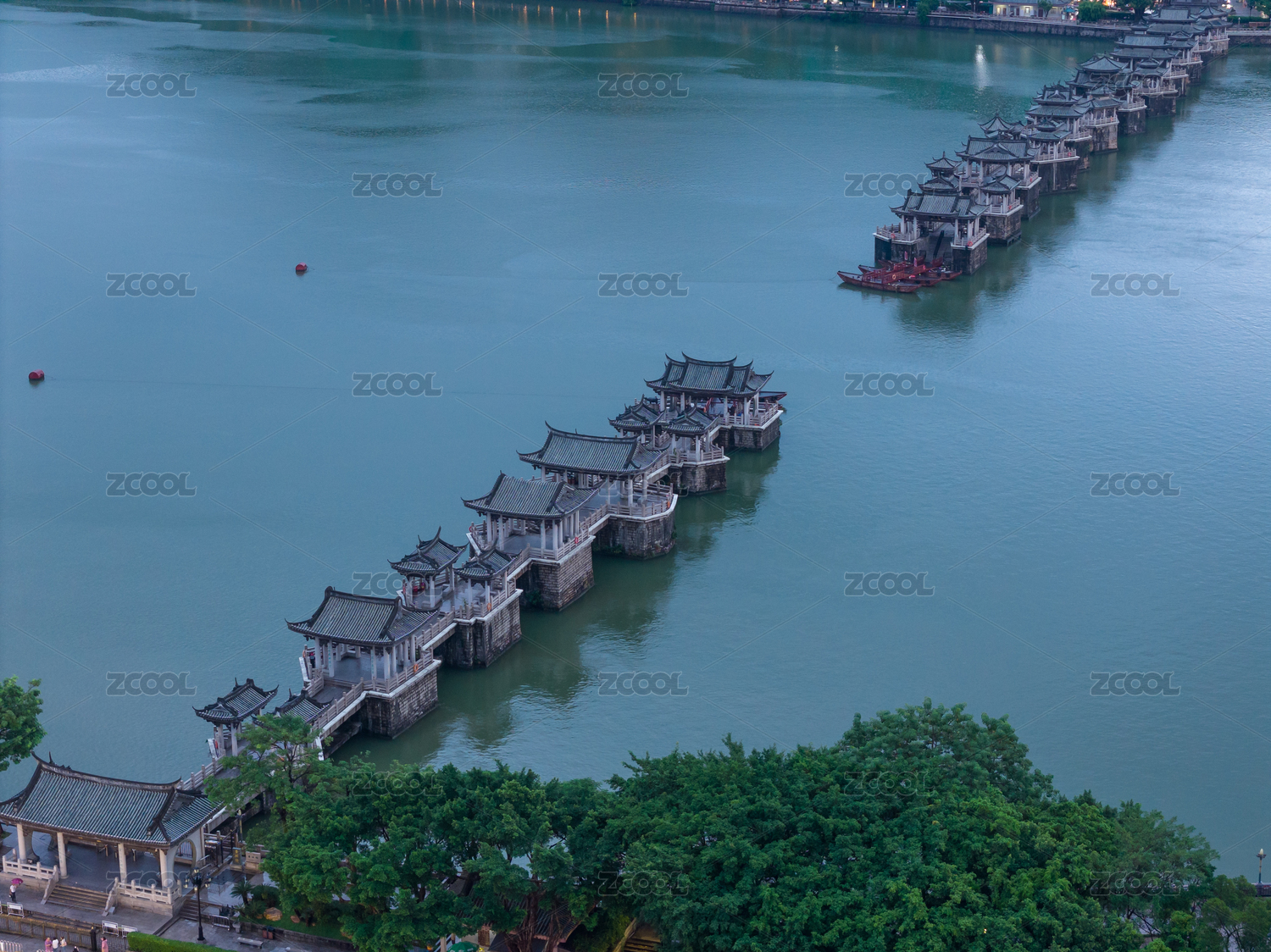 中国广东省潮州市广济桥航拍风景