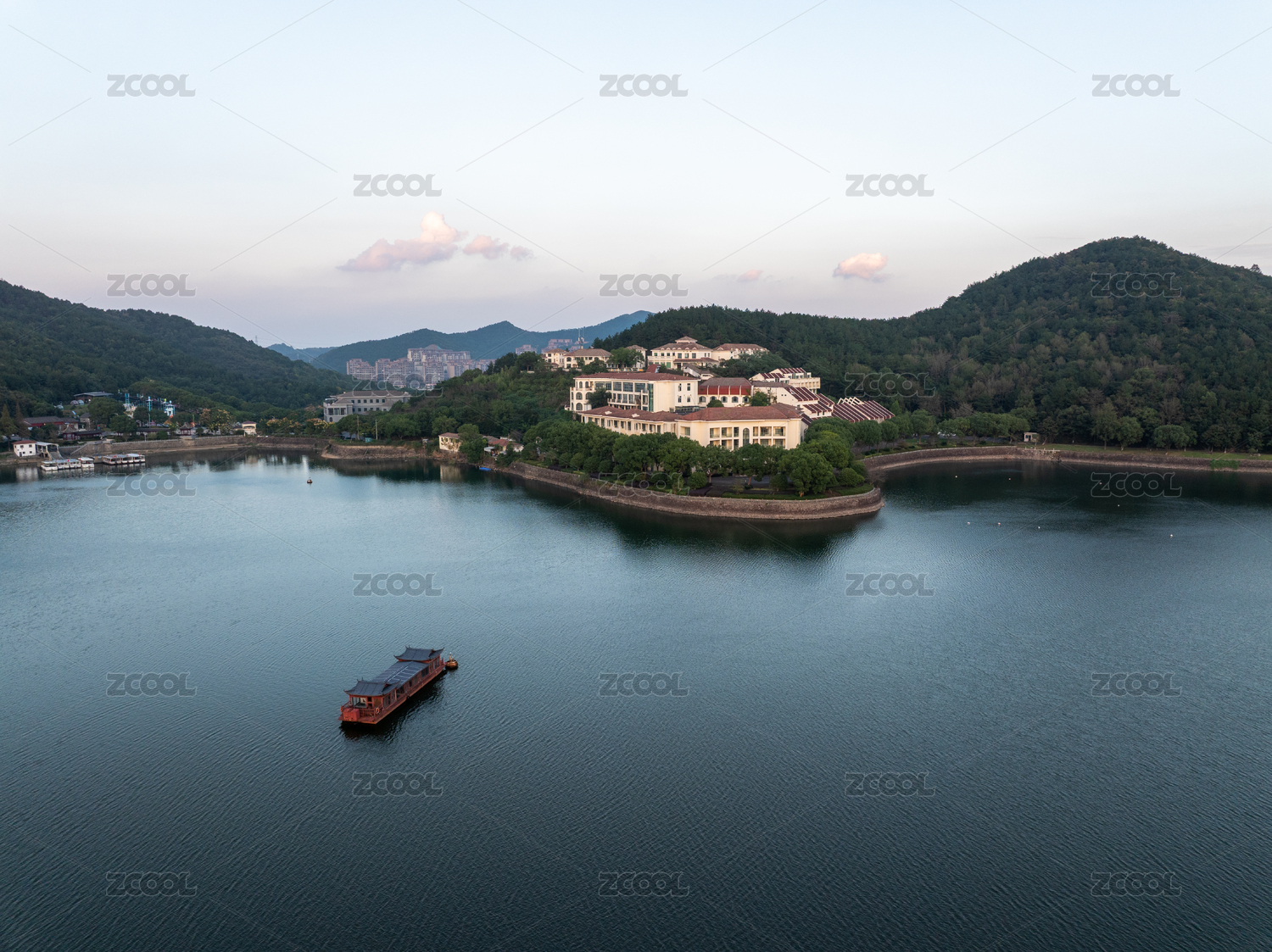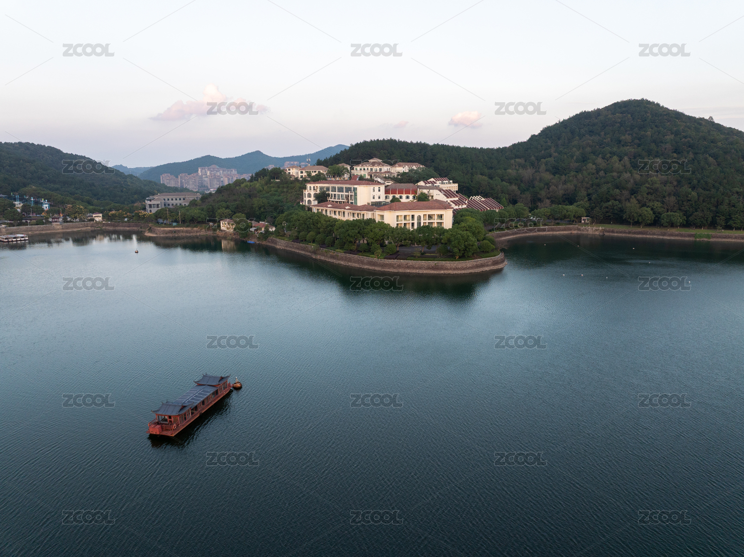 宜兴窑湖小镇湖畔古建筑群生态景观,高视角