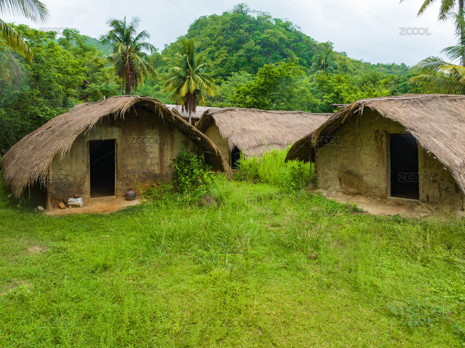 海南五指山市初保村原始村落茅草房