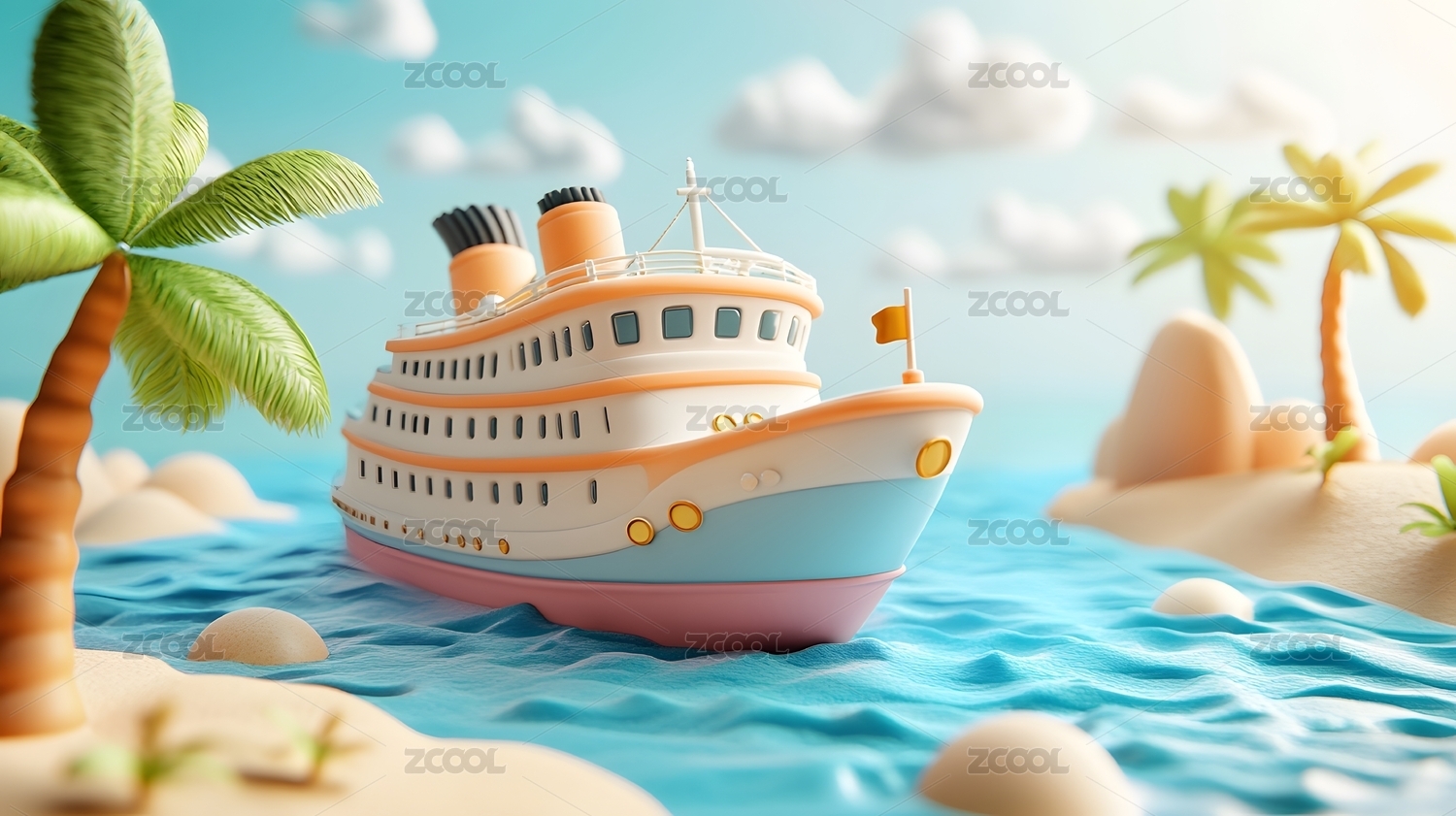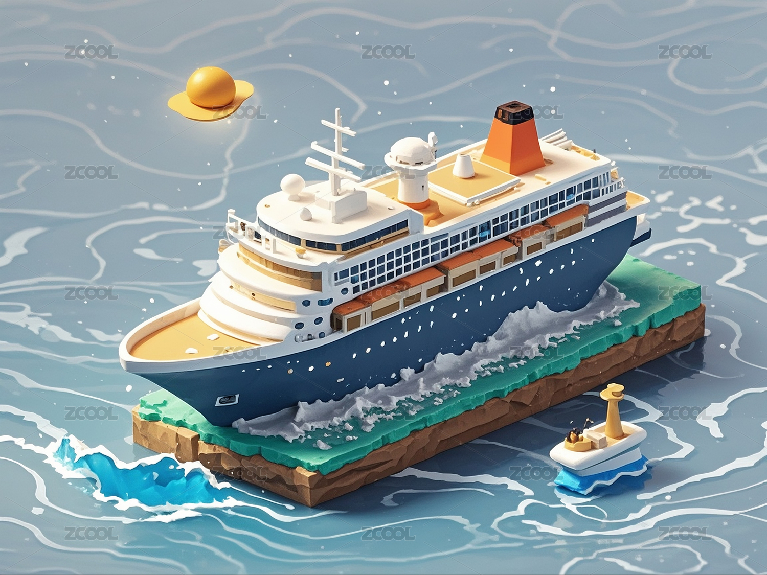 国庆假日出发旅游卡通豪华轮船交通运输插画