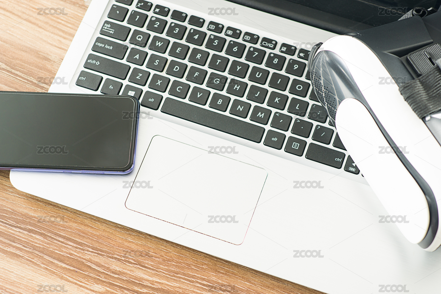 木质桌面上的手机与VR眼镜
