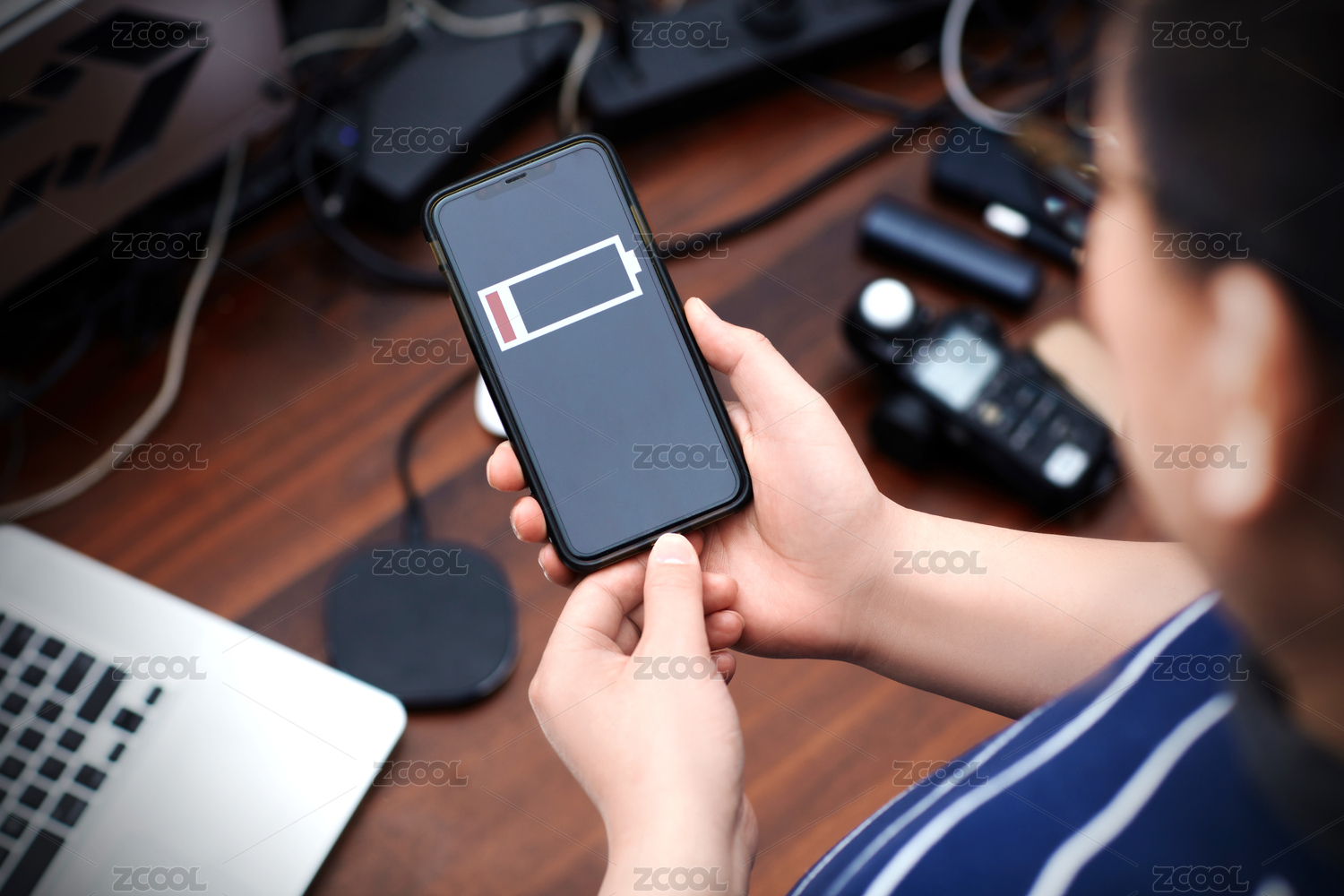 办公桌上的手机和充电器