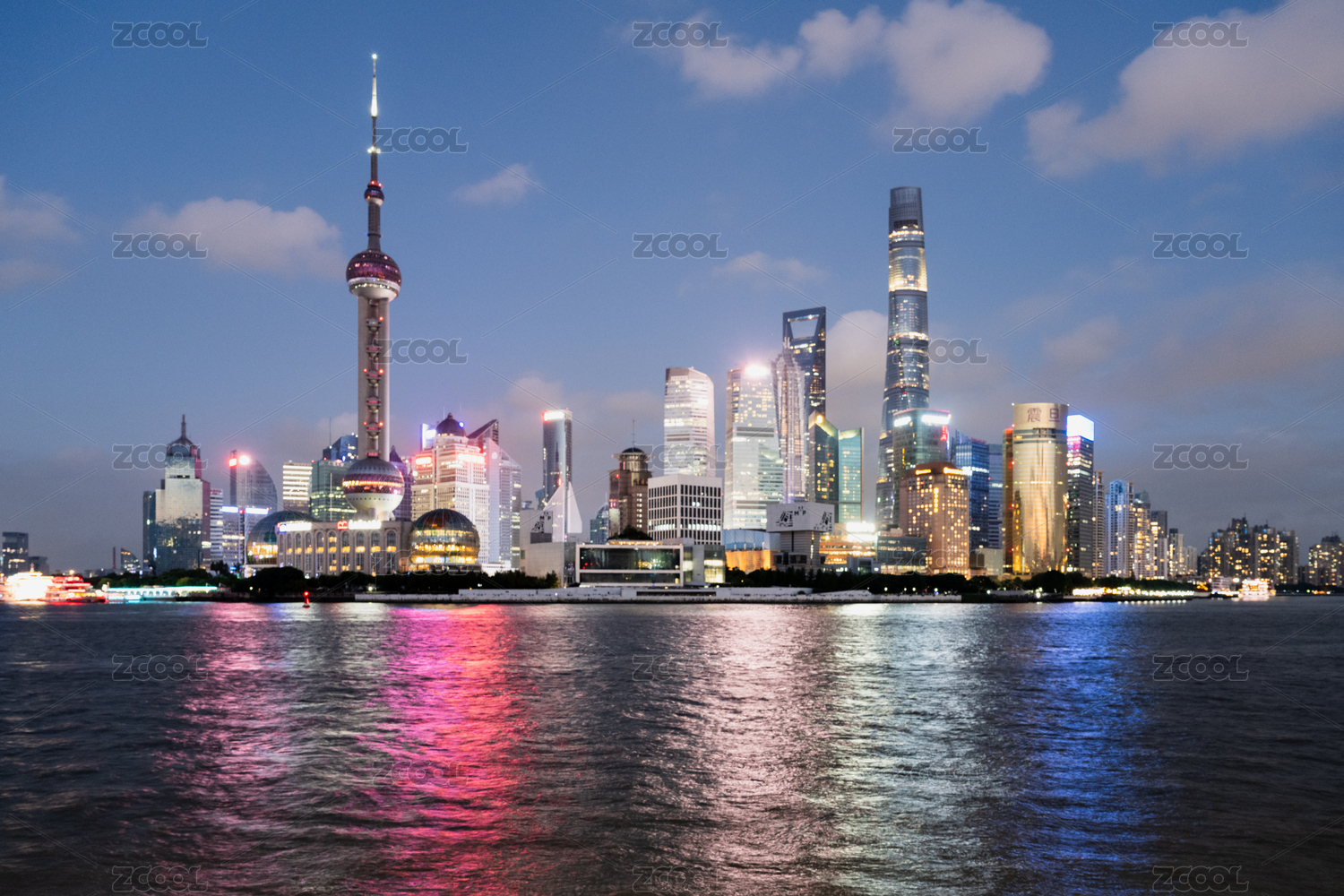 日出时分依然灯光璀璨的上海陆家嘴风光,中国上海
