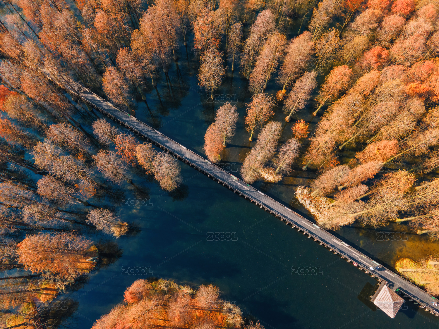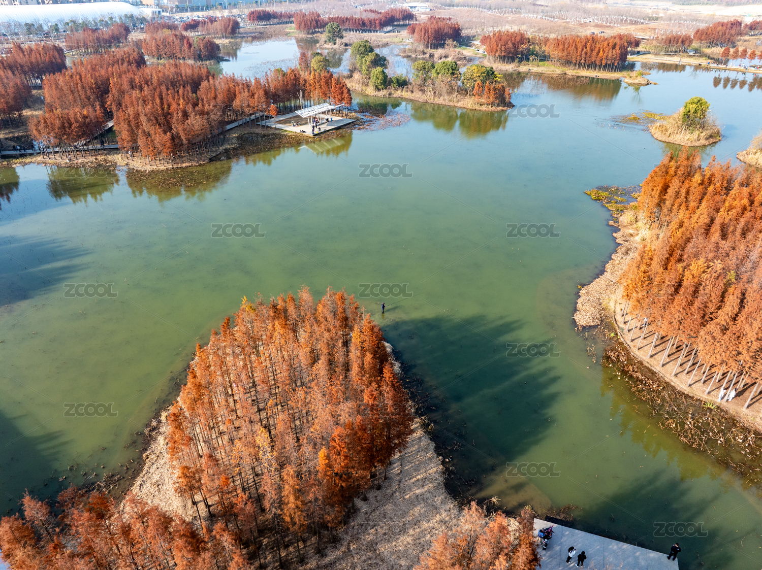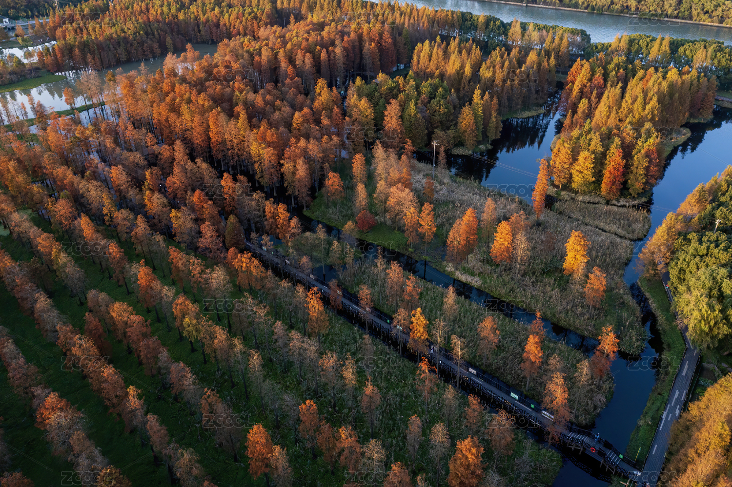 航拍上海青西郊野公园的水杉进入最佳观赏期