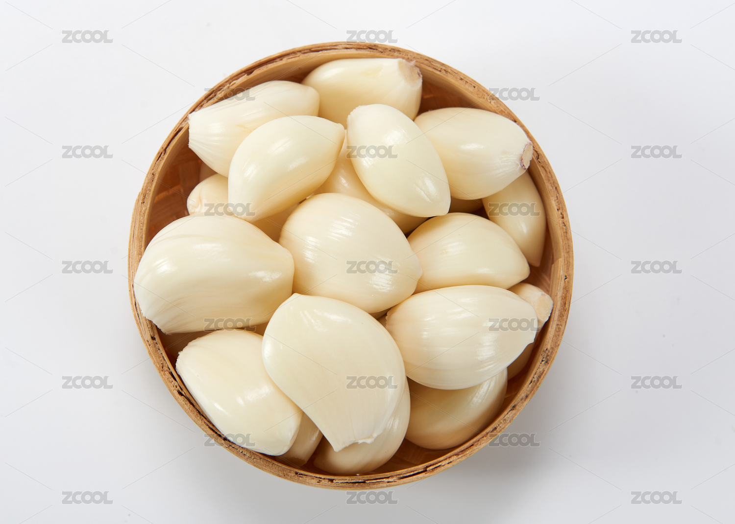白底上的去皮大蒜仁